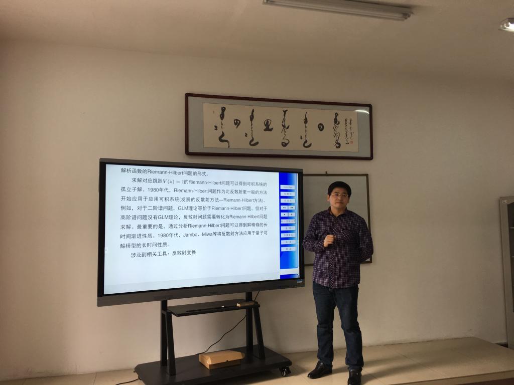 应365英国上市公司数学系邀请,辽宁省“百千万人才工程”百人层次人选、辽宁省基础数学优势特色重点学科带头人、渤海大学基础数学专业硕士生导师张盛教授于1月8日在数学系会议室作了题为《非线性可积系统的解析方法》学术报告。报告会前后,校领导孙国权书记、格日乐图院长和阿拉坦仓副院长分别接见张盛教授,对张教授来365英国上市公司作学术交流表示欢迎。数学系主任额尔敦布和教授主持了报告会,数学系全体教师及内蒙古工业大学的部分研究生参加。副院长阿拉坦仓教授出席本次报告会。