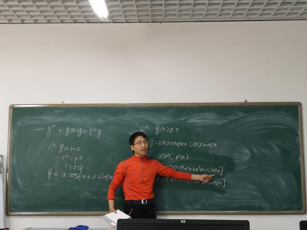 为完善研究反谱问题的基础, 2018年10月25日在第三次讨论课上团队组员轮流报告关于反谱问题的书--《Inverse Sturm-Liouville Problem and Their Applications》。首先,金国海博士讲解了常数变易法求解非齐次常微分方程及朗斯基行列式性质,为报告该书的内容做了铺垫。随后,青梅博士介绍 Sturm-Liouville 问题的谱的渐近式。剩余半小时内团队组员讨论了吴晓红老师的近期研究内容,并提出建议。这正好充分体现了开展讨论班的初衷--快速发现问题、解决问题并呈现成果。