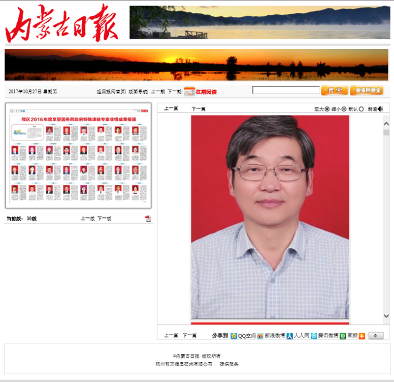 近日,《民族画报》、《内蒙古日报》先后发表文章《数学家阿拉坦仓》、《2016年度享受国务院政府特殊津贴专家业绩成果报道》,对365英国上市公司副院长阿拉坦仓教授进行报道。