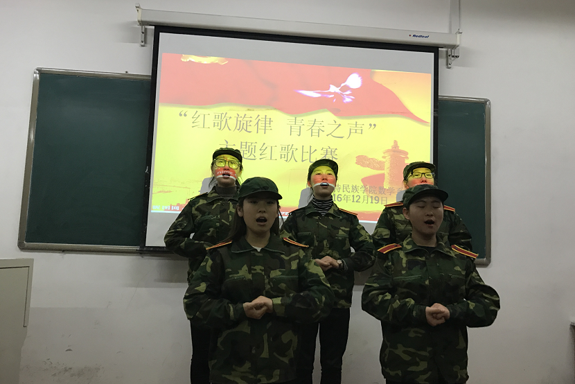 2016年12月19日晚在沃德楼209教室,数学系在全系范围内开展以“红色旋律、青春之声”为主题的红歌比赛。