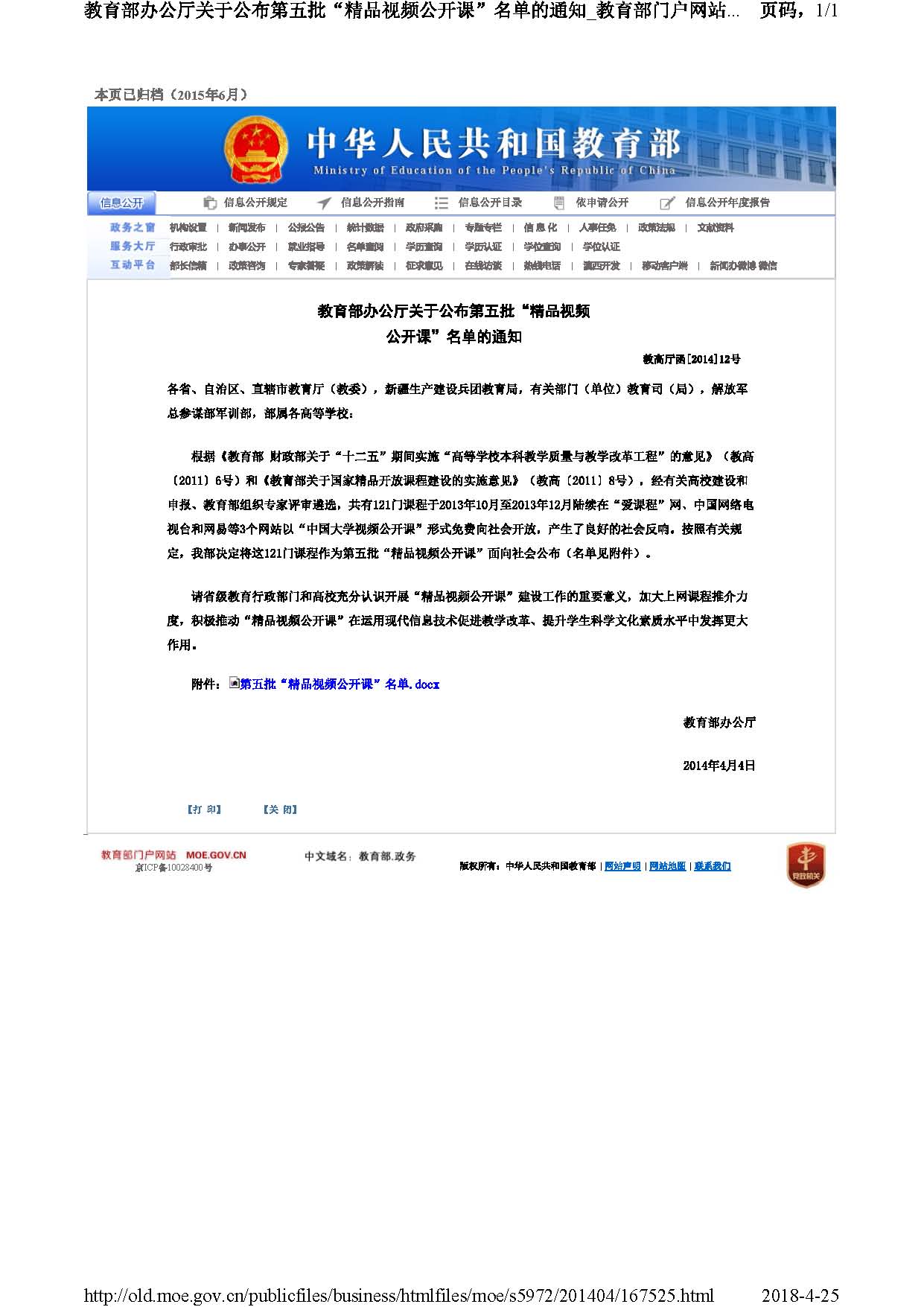 3.资源建设:教育部办公厅关于公布第五批“精品视频公开课”名单的通知等(负责人:阿拉坦仓)