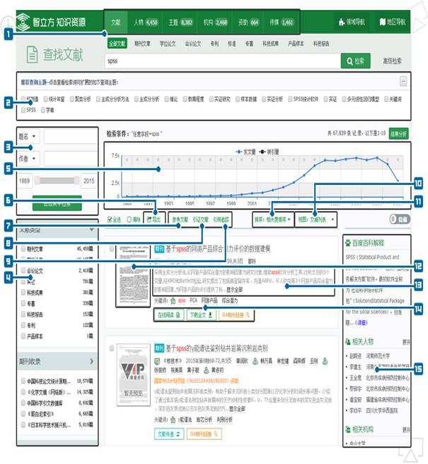 查询对象切换:平台提供“文献”、“传媒”、“主题”、“人物”、“机构”、“资助”对象切换,您可以点击不同的对象模块按需查看各类资源;