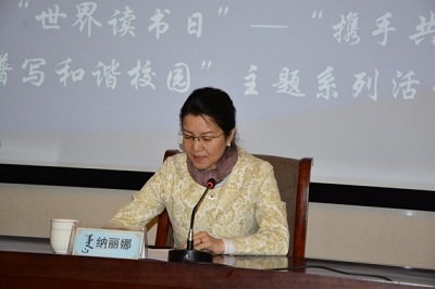 随后,副院长贺希格吉雅致辞,他首先对本届“世界读书日”活动的顺利举办表示祝贺,对师生员工的辛勤工作表示感谢。他指出,本次活动是校园文化建设的重要组成部分,并为“书香校园”的建设奠定良好基础。他希望同学们充分认识读书的重要性,把读书学习作为一种生活习惯,作为一种生活方式,学以致用,立志成才,把读书与做人结合起来,在读书的过程中不断完善自己的人格和品德。