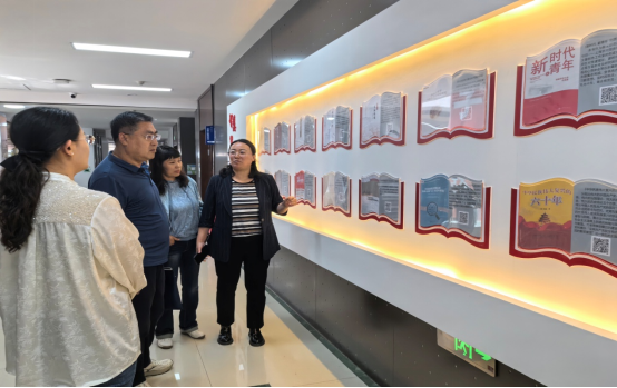 座谈会结束后,张国圣副馆长一行实地考察了图书馆各阅览区、特色专区、古籍文献展阅室、特藏文献展阅室、电子阅览区和党员活动室等场所,双方就智能化建设、古籍和特藏文献建设、个性化服务及各专区管理模式进行了互动交流,操作体验了图书馆自助借还、座位预约和图书盘点机等智能化设备。