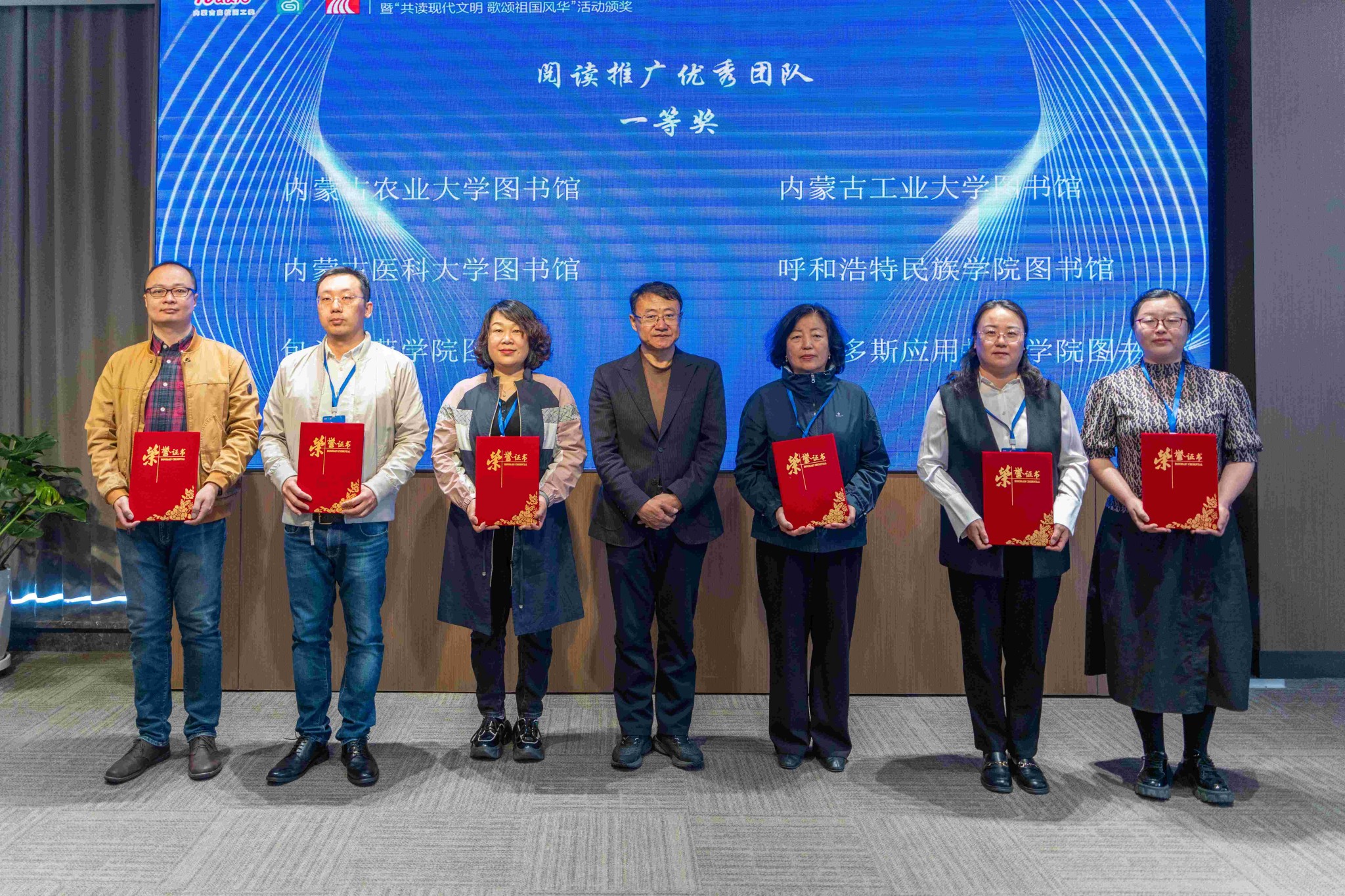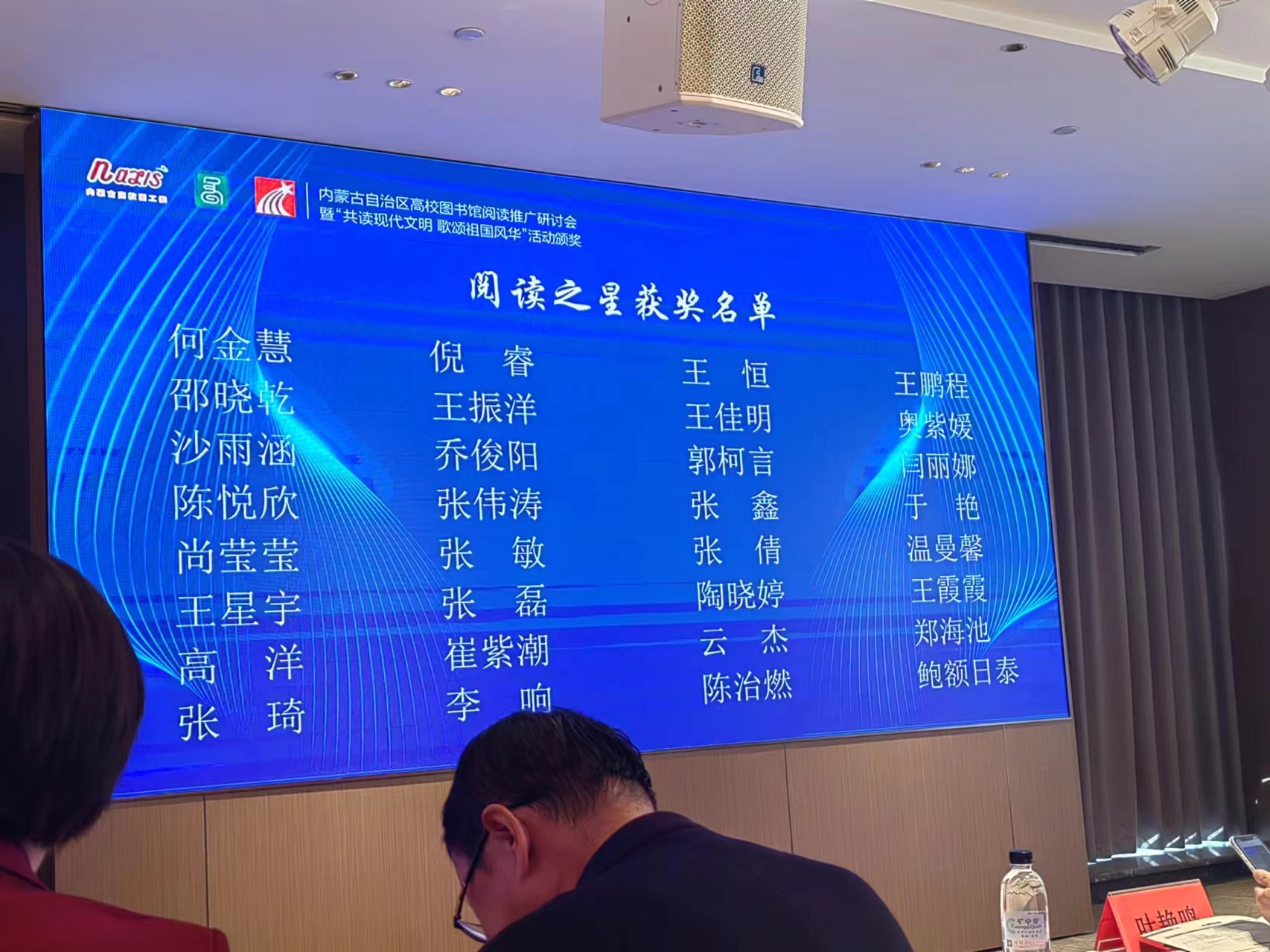 4月21日,由内蒙古教育厅指导、内蒙古自治区高等学校图书馆工作委员会主办、内蒙古师范大学图书馆、北京超星集团承办的“内蒙古自治区高校图书馆阅读推广研讨会暨‘共读现代文明 歌颂祖国风华 ’颁奖活动”在内蒙古师范大学举行。自治区党委教育工委委员,教育厅党组成员、总督学朱宝江,内蒙古师范大学副校长贾美林出席会议并致辞。区内多家高校图书馆馆长及相关专家学者等参加会议。郝喜凤馆长及部分获奖代表参加会议。