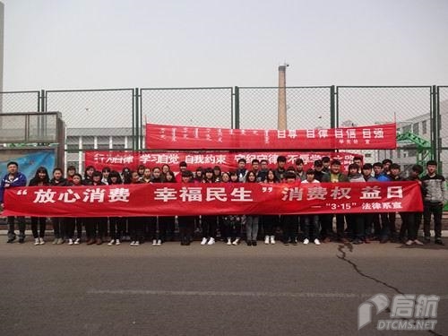 在2013年“3.15”消费者权益日来临之际,法律系学生会、法律系青年志愿者服务队在校园以及周边地区开展了以“放心消费,幸福民生”为主题的3.15系列服务及宣传活动。活动现场悬挂宣传标语,设立法律咨询台,向过往学生和群众宣传讲解《产品质量法》、《消费者权益保护法》、《侵权责任法》、《人民调解法》等与群众生产生活息息相关的法律法规,营造了浓厚的法制宣传氛围。据统计,此次活动共发放各类宣传资料3000余份,取得了良好的社会效果。