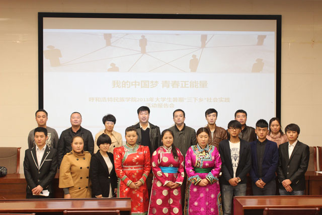 来自美术系2012级版画专业班锡林娜同学首先做了实习感想发言。锡林娜同学是我院5人参加2013全国少数民族大学生提升就业能力暑期实习计划项目成员之一。她说,这次实习是一次极其难得的学习机会和锻炼机会,我学到了书本中学不到的知识,提升了就业能力,增强了学习的动力,坚定了理想信念,收获了经验与友谊。今后将更加努力学习,拓宽知识面,提高综合素质,为祖国和家乡的发展做出自己的贡献。随后,蒙古语言文学系模日德乐、外语系银江、传媒系阿木尔、体育系王明宣、法律系王坤、环境工程系乌优娜、音乐系白浩等7名同学就自己在新巴尔虎左旗内蒙古党员干部现代远程教育东部区蒙语译制基地、鄂尔多斯市恩格贝生态旅游区、和林县新店子中心小学、呼和浩特市新城区博爱双语幼儿园、通辽市科尔沁区法院、阿鲁科尔沁旗赛罕塔拉苏木西拉塔拉嘎查、北汽福田汽车股份有限责任公司等地参加社会实践活动作汇报,从实践经历、实践感受、实践收获等方面与在场的同学进行了交流。