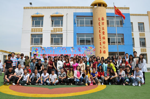 在“呼和浩特市蒙古族幼儿园”见习的主要是2011级的63名学生,老师将他们分成了3组,每组21名学生,分别于不同的三个时间进入呼市蒙古族幼儿园见习。由许晓芳老师、哈达老师、乌日罕老师带队和同学们一起进行了这次见习活动。这次见习主要是参观并参与了幼儿园举行的“六•一”大型游园活动。幼儿园里设置了23个不同的游戏,给家长和小朋友限定了2个小时,看其是否能在规定的时间将23个游戏完成,我系的学生被安置在不同的游戏点,观看并帮助幼儿园的老师们进行一些相关的工作。经过两个小时在幼儿园中的亲身体验,学生们都很兴奋,对自己专业的理解也更加的深刻了。