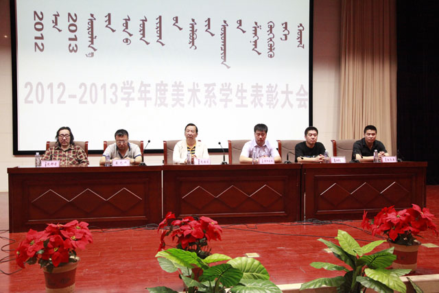 为了不断提高教育教学质量、丰富校园文化生活和使学生们真正热爱自己所学的专业,同时也鼓励在过去的一年里,对学习出色,表现突出的学生给以鼓励,美术系于6月8日上午在图书馆二楼报告厅举办了美术系系列表彰大会。学院团委阿古拉书记、学生处朝格吉乐图副处长、美术系书记包国庆、系副主任巴图、团总支白永泉等教师参加了这次活动并颁奖。这也是美术系近年来表彰规模最大、表彰范围较广的一次会议。此次表彰大会共设立了15种奖项,分别从学生的学习、生活、工作等方面进行了表彰。大会上,包国庆、巴图两位教师就“表彰大会”活动的主题、目的和意义讲话。并对本学期的工作进行了总结。