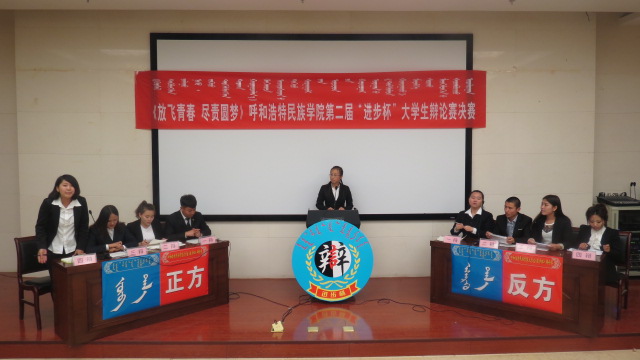 经过历时近一个月的预赛,来自各系的20名辩手最终进入了决赛,并组成蒙语组、汉语组各两个队进行辩论。辩论赛分为开篇立论、对辩、攻辩小结、自由辩论、总结陈词五个环节。首先,蒙语组辩论双方围绕“民族技艺是否应该公开”展开激烈交锋,双方立场明确,主旨鲜明,针对对方辩友提出的观点做出反驳,据理力争;汉语组辩题为正方 “我不平凡,我很重要”,反方为“我很平凡,我不重要”。比赛中,双方实力相当,语言犀利,条理清晰,在随后的自由辩论环节中更是针锋相对,唇枪舌战,赢得了现场观众的阵阵掌声。经过激烈的角逐和评委的讨论,最终,蒙语组和汉语组的反方分别获得了本次比赛的冠军;传媒系乌吉斯古楞、毕力格巴特尔,教育系马丹丹、美术系马悦、法律系安雪莹、汉语言文学系李梓佳荣获了本届辩论赛的“最佳辩手”称号。学院团委将选拔在本次比赛中表现出色的选手参加全区第四届大学生辩论赛。