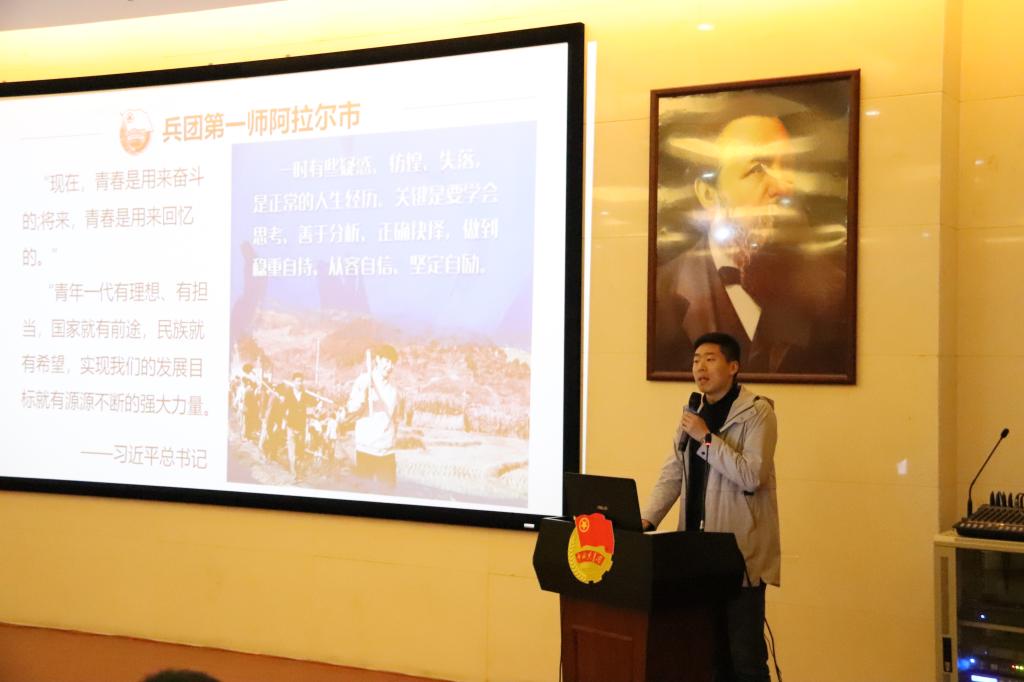 宣讲会上,宣讲团成员播放了2019年兵团西部计划宣传片。随后,兵团大学生志愿服务西部计划优秀志愿者代表韩自超、曹雅静、张勐、李明辉分别为在场的学生们分享了他们志愿服务西部的心得体会。他们结合各自经历,讲述了自己用青春的脚步丈量祖国西部,积极践行习近平新时代中国特色社会主义思想,在平凡的服务岗位上绽放光彩的志愿服务故事。