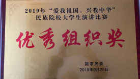 “爱我祖国 兴我中华”全国民族院校大学生演讲比赛自2011年起首次举办。已逐步成为具有较大影响力的品牌活动。增进各民族学生间的了解与交流,引导各民族学生牢固树立正确的祖国观、历史观、民族观。用演讲的形式,诠释着对民族团结内涵的深刻理解与思考,表达着对伟大祖国的热爱之情。