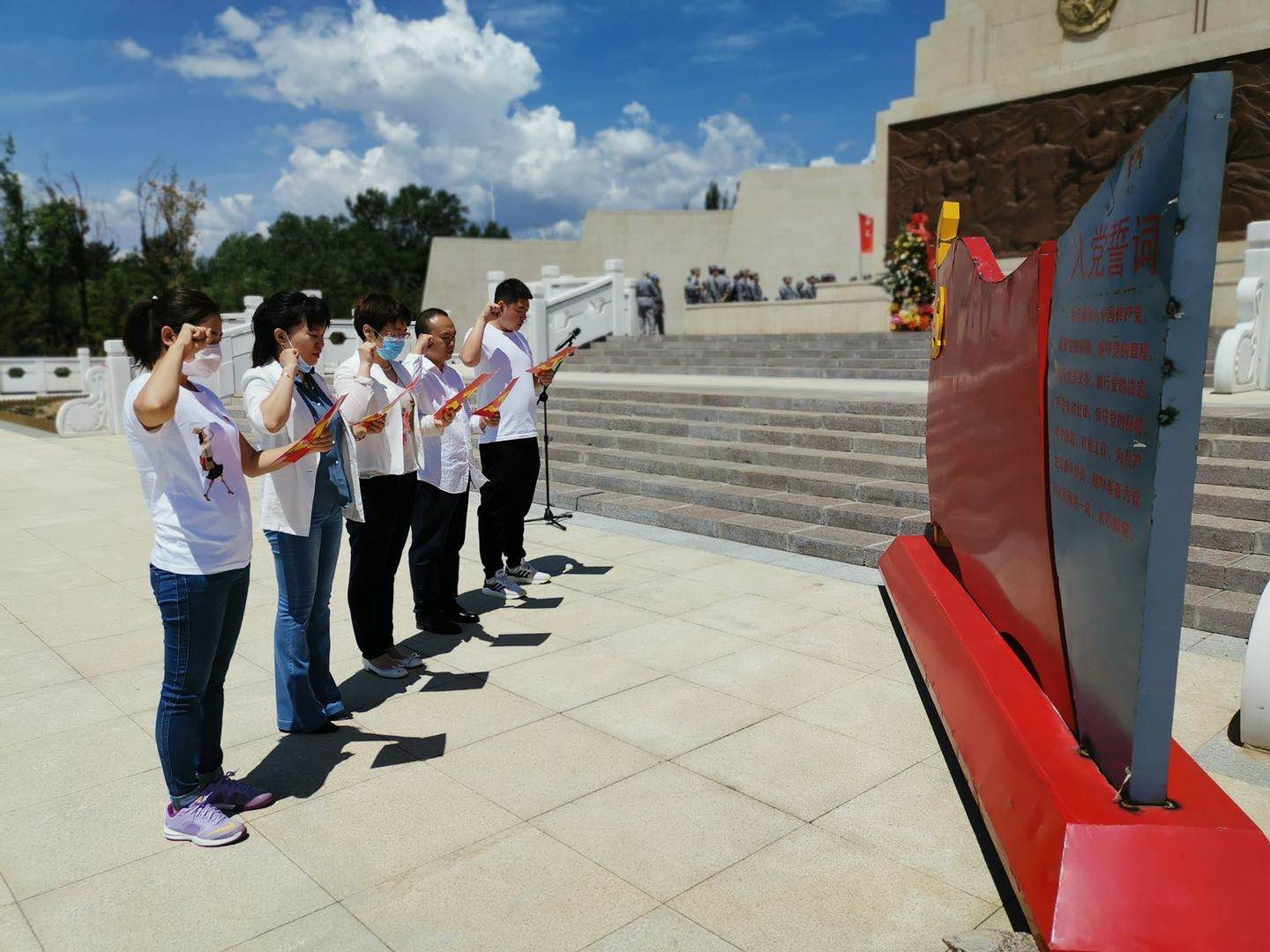 首先大家参观学习了“大青山地区革命英烈”、“大青山地区革命史展览”等展馆。随后,在庄严的人民英雄纪念碑下,面对鲜红的党旗,重温了入党誓词。