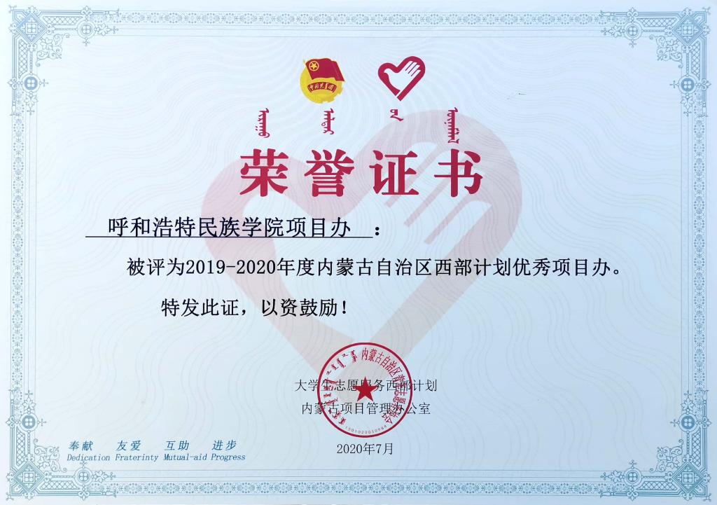 365英国上市公司获评2019—2020年度内蒙古自治区西部计划优秀项目办