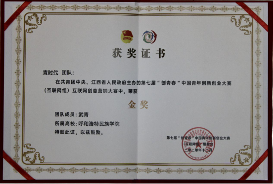 2020年12月11日,由共青团中央、江西省人民政府主办,共青团江西省委、共青城市人民政府、京东集团等承办的第七届“创青春”中国青年创新创业大赛(互联网组)— 创青春互联网创意营销大赛历3个月圆满结束。本次比赛覆盖大学生人数超过1500万,共计来自1200多所高校的2万多支参赛队伍参与,各高校参赛队伍直播场次超过2万场。大赛共决出10个金奖、34个银奖、76个铜奖、10个优秀组织奖和50个杰出贡献奖。