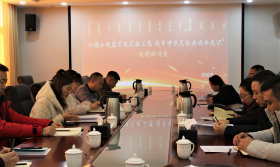 为深入学习习近平总书记关于民族工作的重要论述精神,铸牢中华民族共同体意识,为认真开好专题民主生活会做好准备,12月14日下午,团委在办公楼二楼会议室组织开展了“铸牢中华民族共同体意识”主题研讨会。团委全体教师、各二级学院团总支书记参加了会议,团委书记苏伦高娃主持会议。