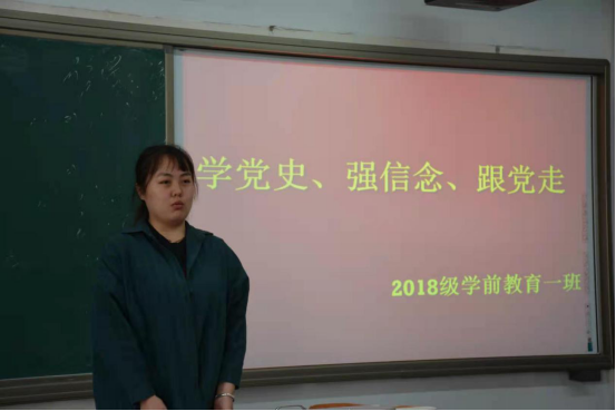 为深入推进学校共青团“驻校蹲班”活动,进一步增强广大团干部与团员青年的联系,详细了解把握青年学生的思想动态和学习生活情况,4月9日上午,校团委书记苏伦高娃深入学前教育学院2018级学前教育一班团支部参加“学党史、强信念、跟党走”主题团日活动。