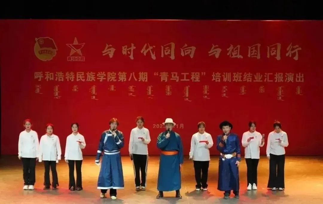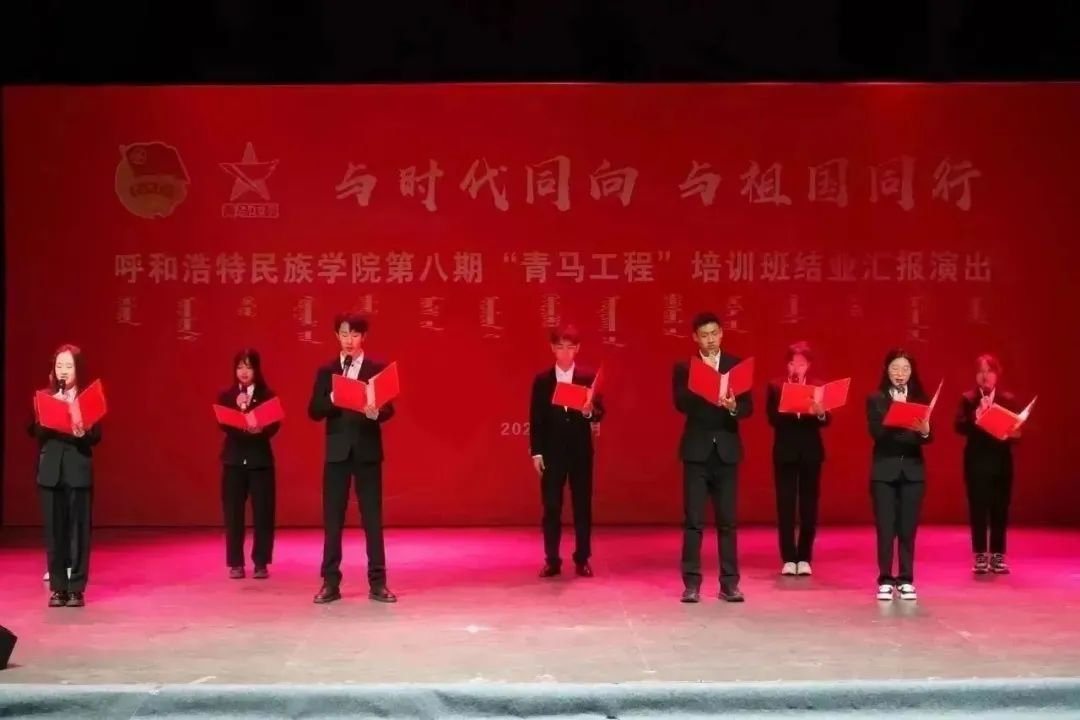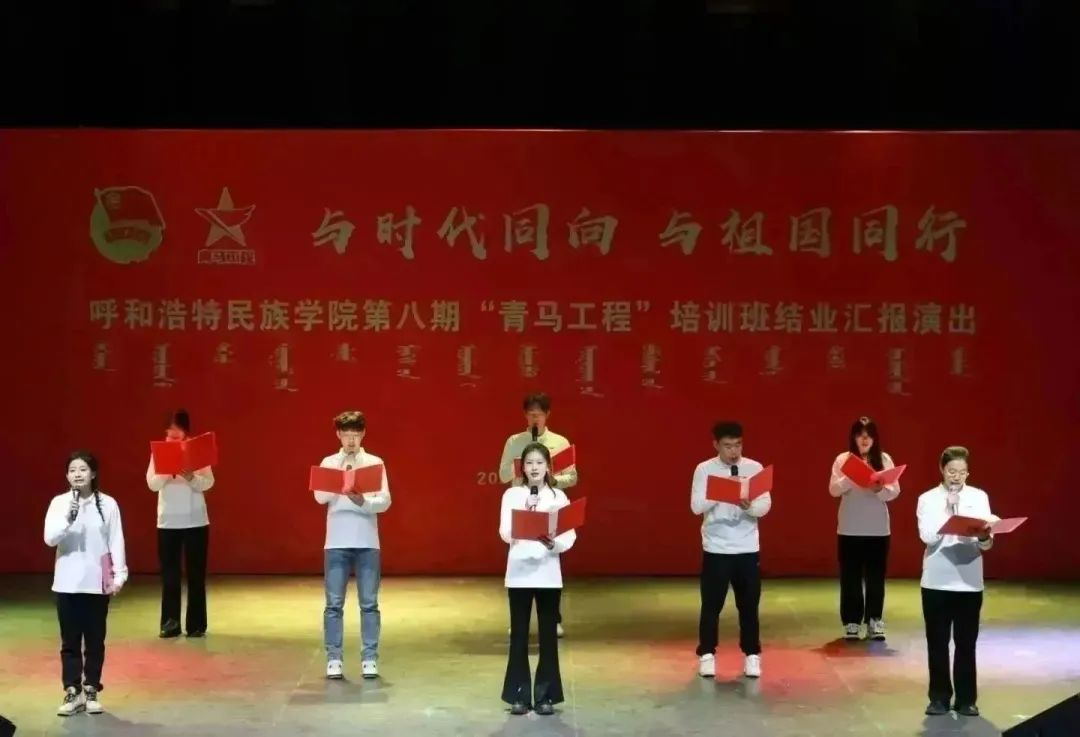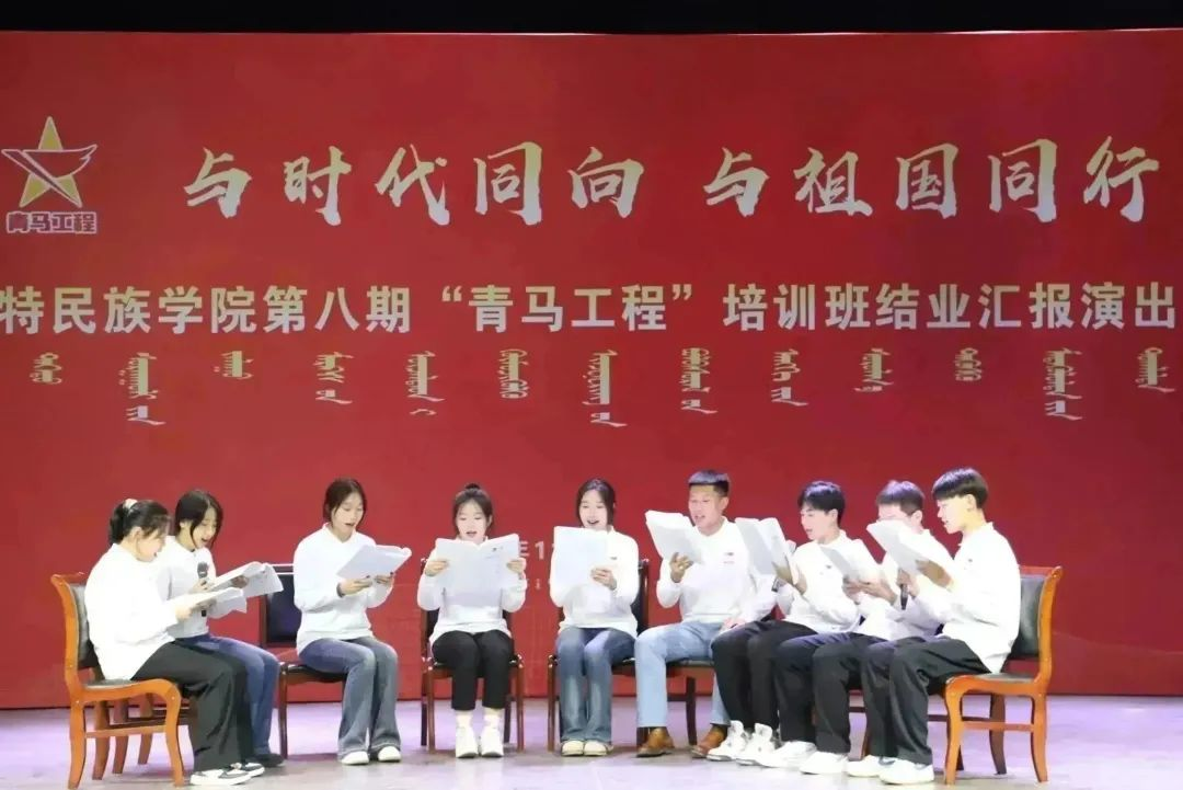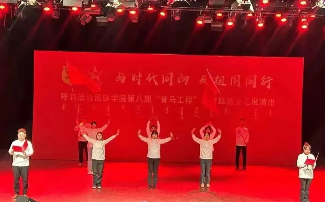 学员们分别以舞台剧、话剧、舞蹈、歌曲等不同形式呈现“青马工程”的学习成果,展现青春风采,抒发家国情怀。舞台剧形象刻画了青马学员的成长历程;歌舞呈现出学员们积极向上的奋斗姿态与青春风采;诗朗诵让我们看到了新时代青年们正意气风发,为实现中华民族伟大复兴的中国梦而努力奋斗的精神面貌。