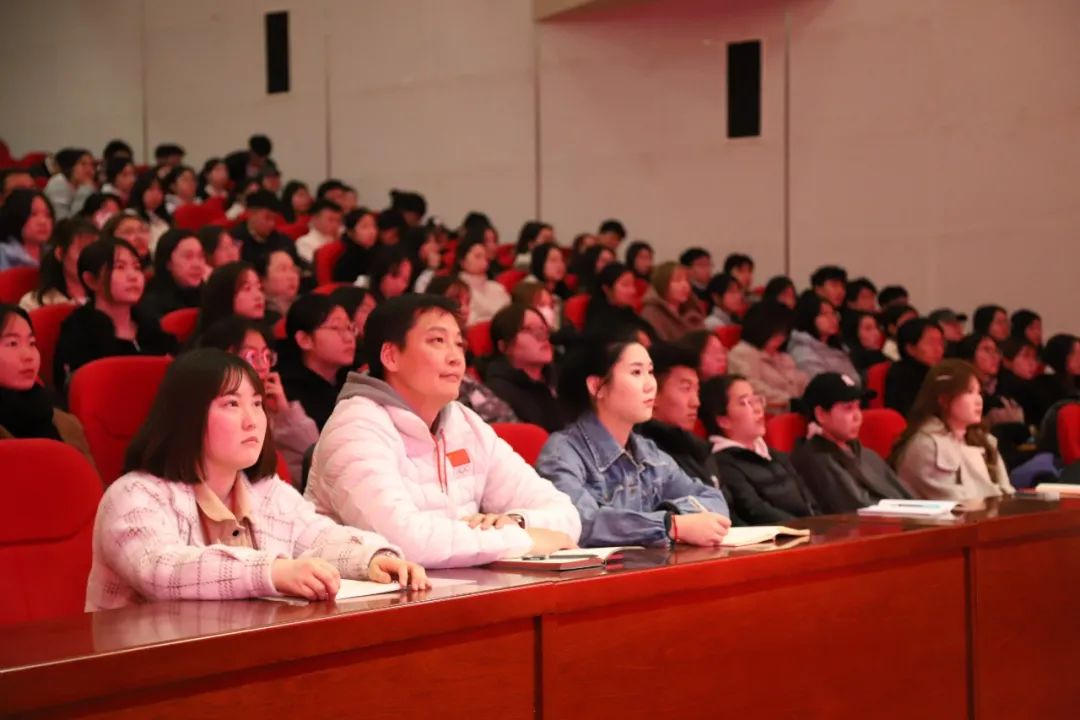 为深入学习宣传贯彻党的二十大和二十届二中全会精神,贯彻落实习近平总书记对青年工作的重要指示精神,进一步增强基层团组织的凝聚力,完善团的组织体系,校团委于3月7日下午在北院图书馆二楼报告厅举办了“感党恩、听党话、跟党走”主题团日活动暨团务培训会。团委全体人员、各二级学院团支部书记、入团积极分子代表共计300余人参加,会议由团委柴静主持。