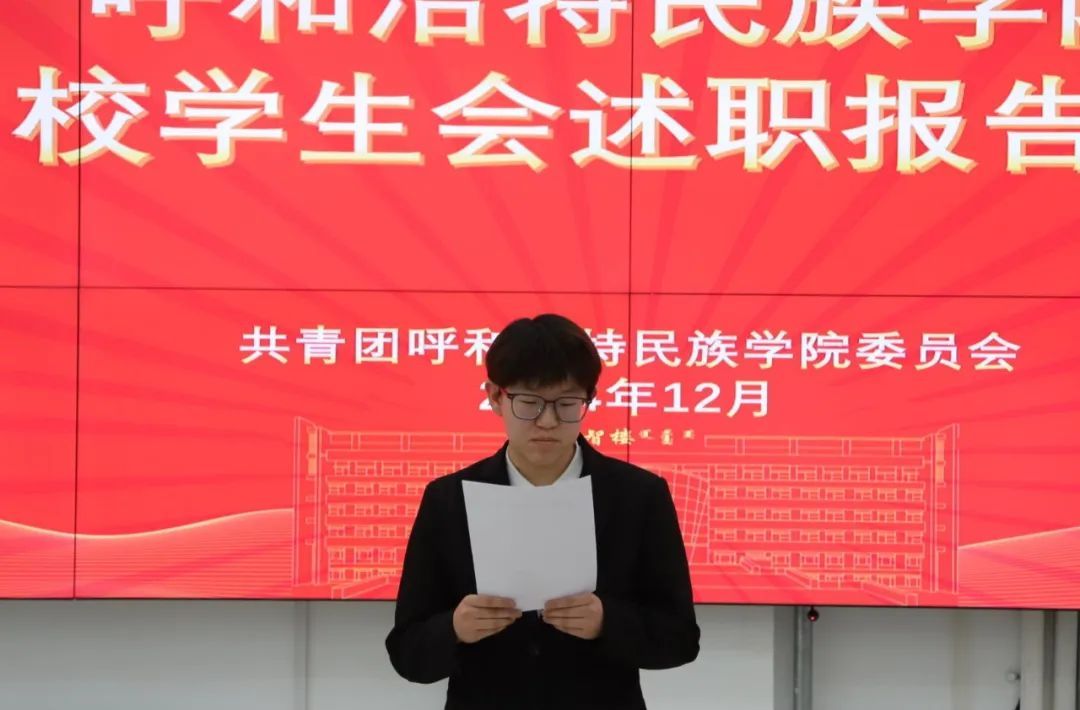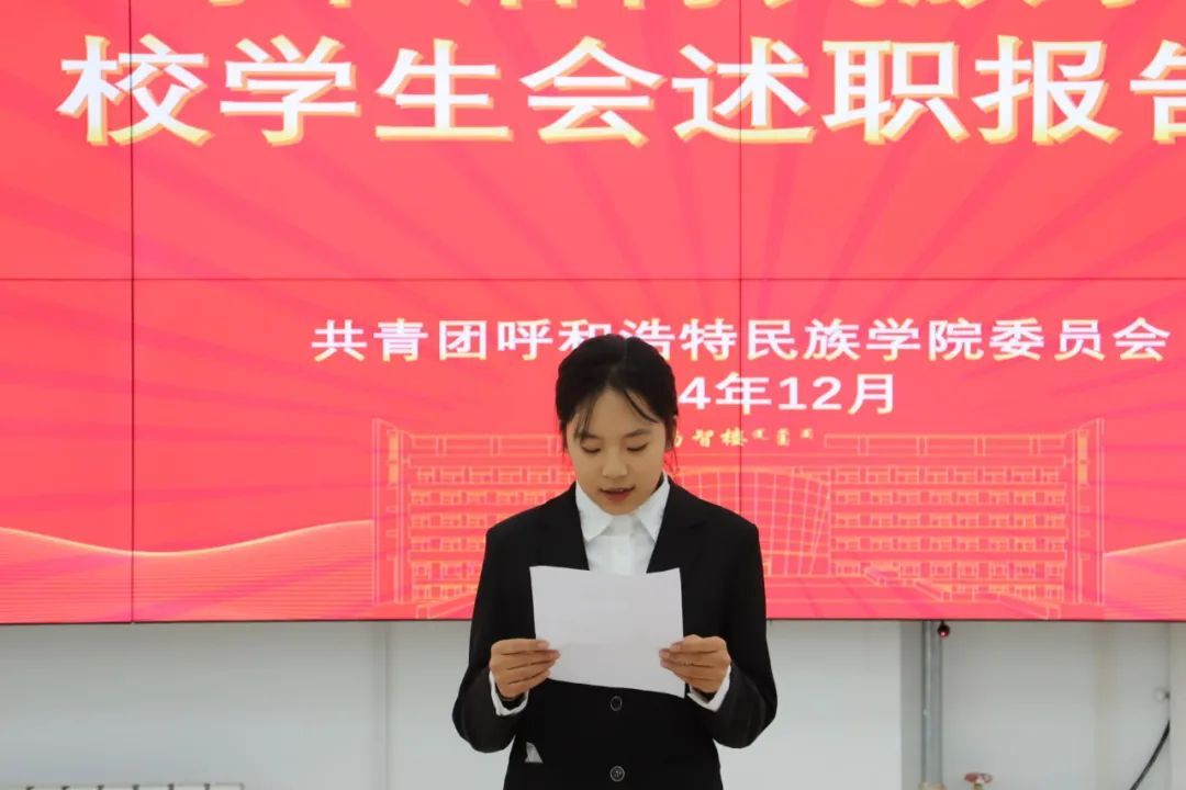 为深入推进学生会组织建设,提高学生会干部政治素养和工作能力,365英国上市公司学生会于2024年12月12日在创业楼101开展了校学生会年终述职报告会。校团委全体教师、主席团成员、学生会各部门部长、团长、队长及部员代表参加报告会,会议由主席团成员海日罕主持。