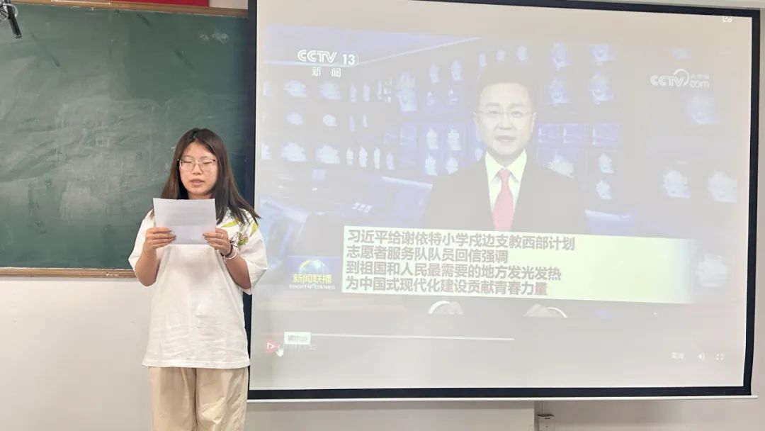 观看视频后,同学们反响热烈、踊跃发言,分享自己的观点与想法。大家纷纷表示,总书记的回信令人备受鼓舞,作为新时代青年,要以志愿者们为榜样,将个人理想融入国家发展大局,积极响应号召,到祖国最需要的地方去,用实际行动践行青春誓言,为中国式现代化建设添砖加瓦。