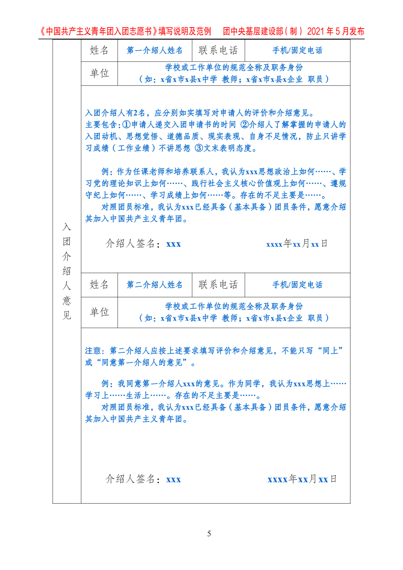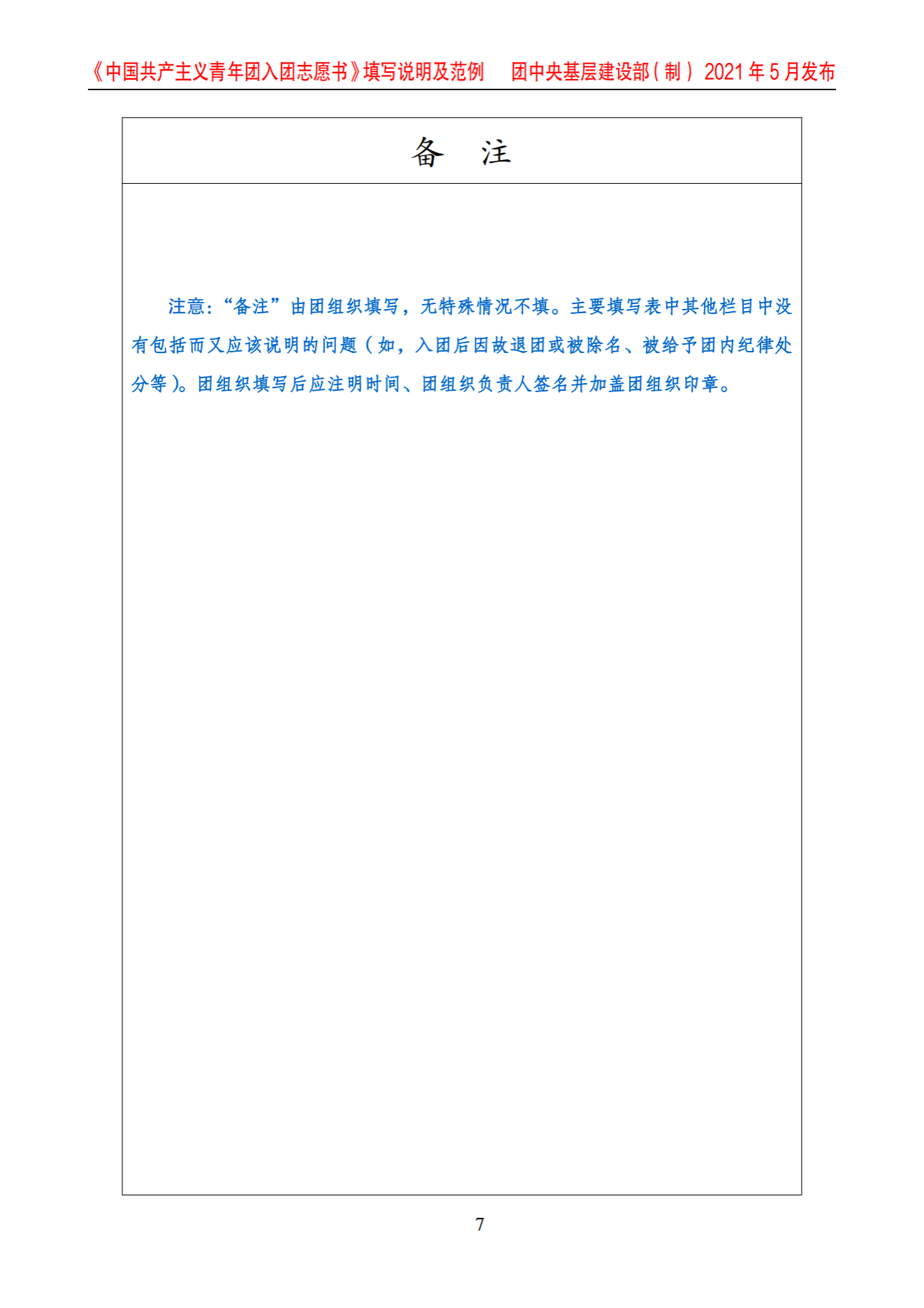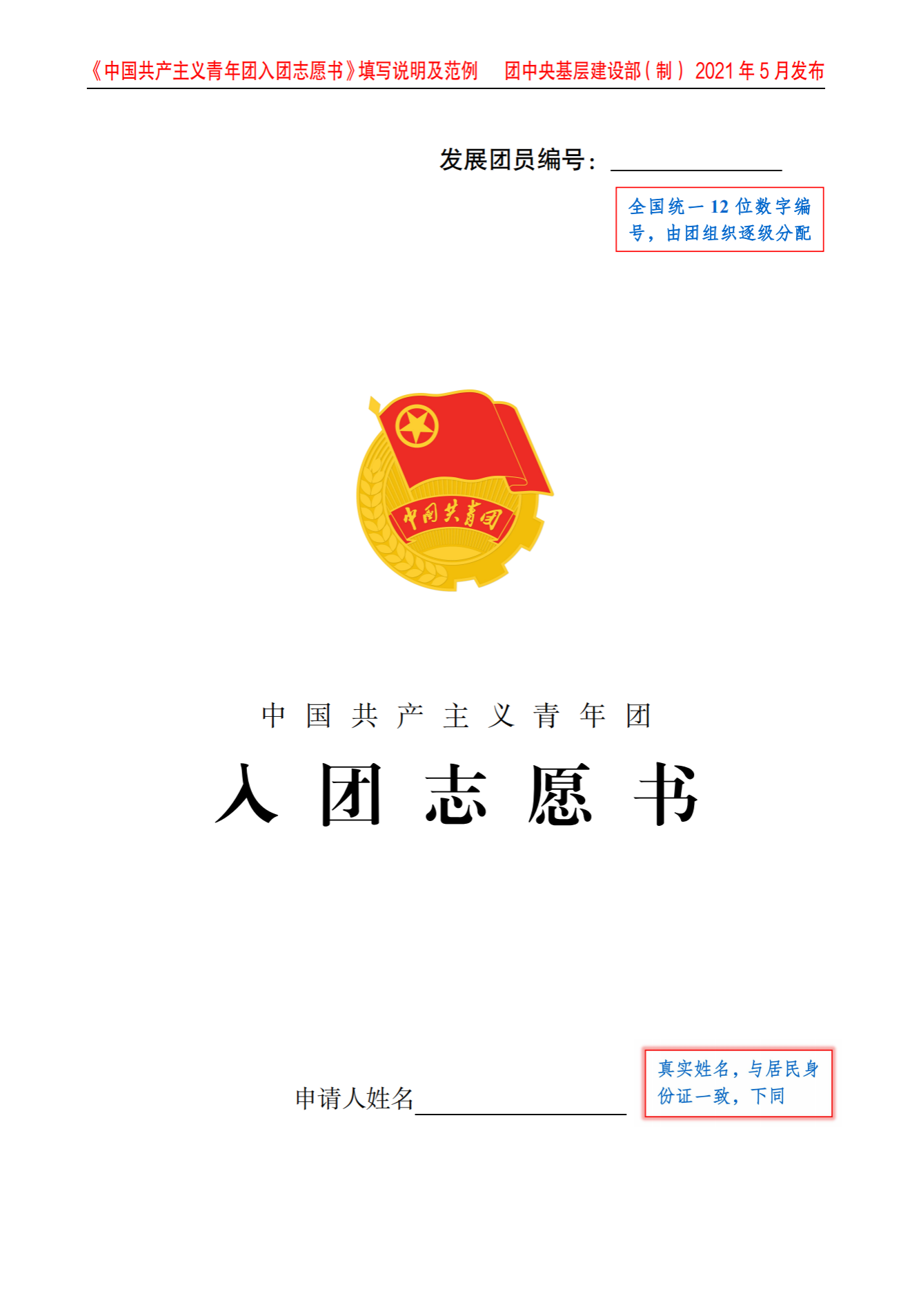 《中国共产主义青年团入团志愿书》填写说明及范例