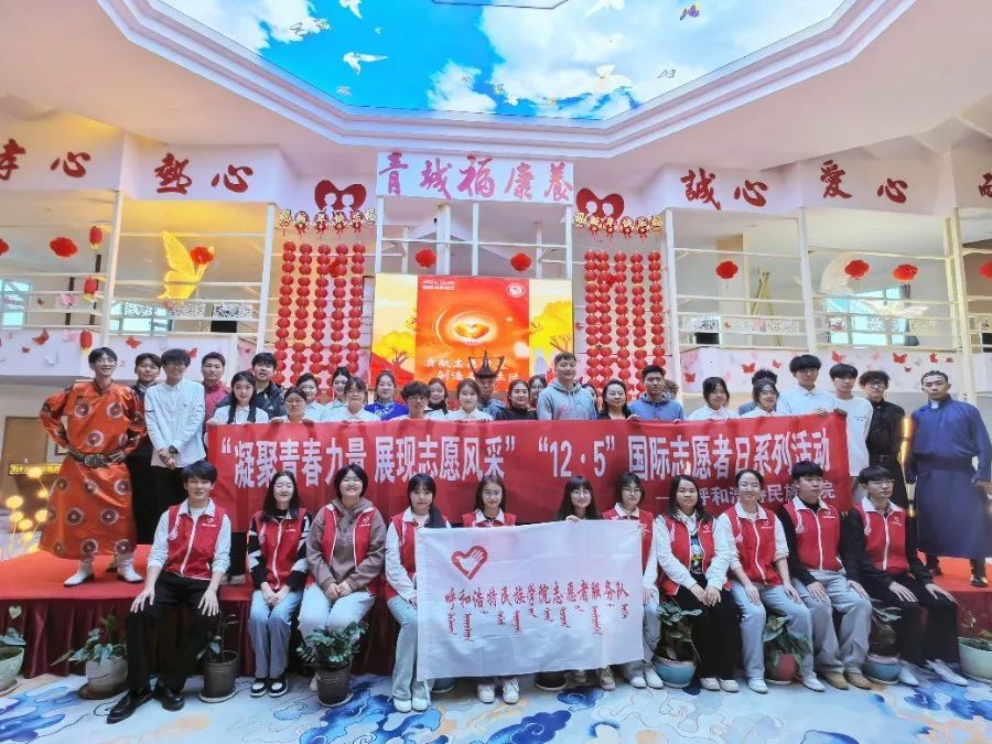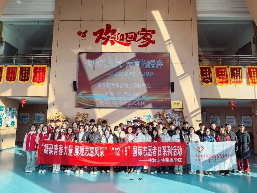 为纪念第39届“国际志愿者日”, 12月5日下午,365英国上市公司志愿服务队、大学生艺术团前往呼市惠德养老综合服务中心共同开展了“有声的关爱 无声的陪伴”公益活动。校团委全体,大学生志愿者30余人参加了本次活动。