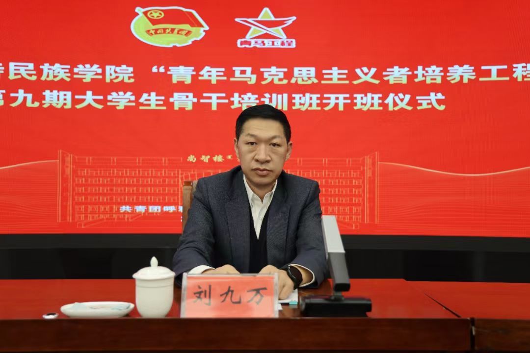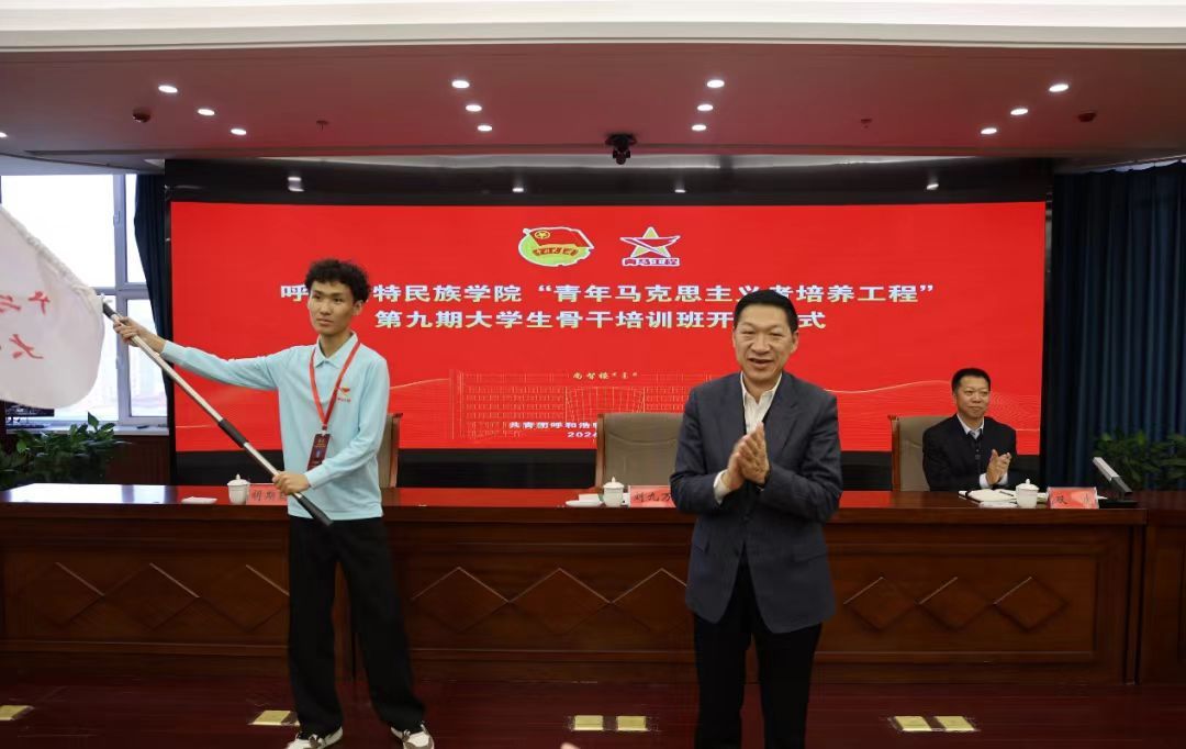 开班式上,刘九万为本期培训班授旗,并以《笃行致远 不负韶华,奋力书写为中国式现代化挺膺担当的青春篇章》为题,为“青马班”学员讲授了专题思政课。他说,新时代呼民院青年要进一步深入学习贯彻党的二十届三中全会精神,从时代维度,充分认识当代青年成长发展所面临的复杂环境与严峻形势,坚定对马克思主义的信仰、对中国特色社会主义的信念、对中华民族伟大复兴的信心,努力成为铸牢中华民族共同体意识的播种者和传播者,为强国建设、民族复兴伟业作出应有贡献。