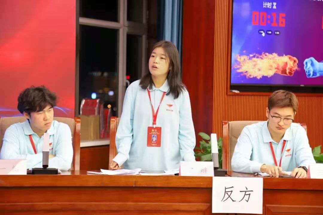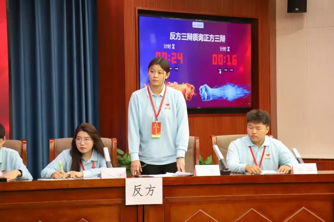 为提高学员们的思辨能力,学校第九期青马班于11月11日在综合楼12楼会议室举办了主题辩论赛。由校辩论队队长李文爽,成员刘丽娜、李克勤担任评委。
