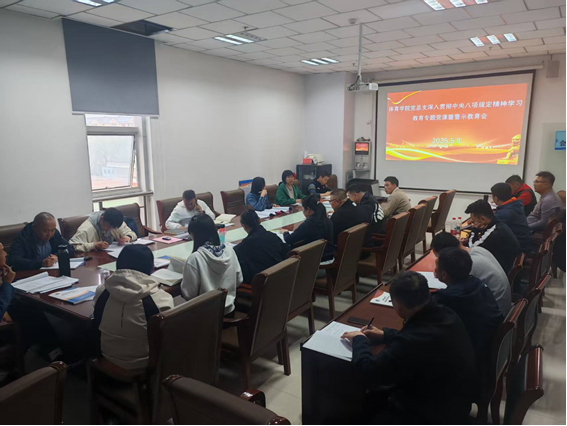 为深入贯彻落实全面从严治党要求,强化党员干部纪律意识,5月8日下午,体育学院党总支在体育馆三楼会议室召开中央八项规定精神学习教育专题党课及警示教育会。学院全体中心组成员、全体党员参会,会议由党总支书记萨日胡主持。