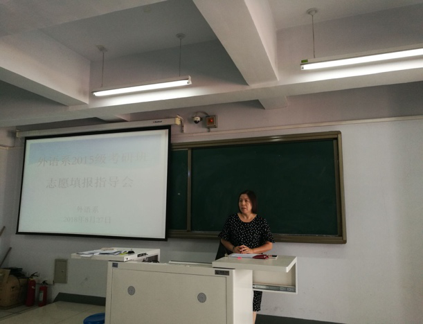 考研班暑期复习已结束,考研报名即将启动,为了解2015级考研学生的暑期复习情况及拟报考院校、专业情况,外语系于2018年8月27日下午3:00在都林楼606召开了考研志愿填报指导会。本次会议由外语系主任肖查娜主持,外语系2015级考研班全体学生及考研班班主任高乌兰参加了本次会议。