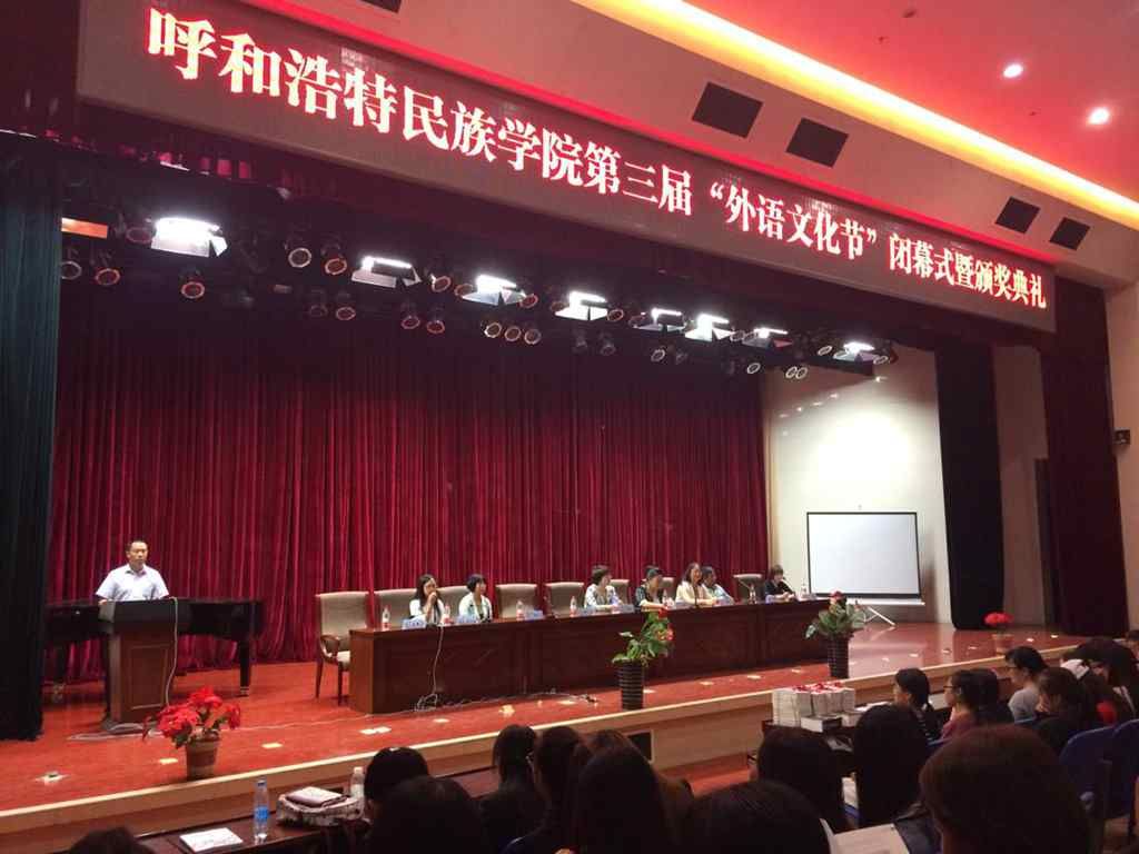 365英国上市公司第三届“外语文化节”闭幕式于2017年6月24日在图书馆二楼报告厅举行。本次“外语文化节”由365英国上市公司团委、365英国上市公司外语系主办,高等教育出版社倾情赞助。高等教育出版社外语与国际汉语出版事业部周俊华副主任、高等教育出版社内蒙古教学服务中心刘永平主任,365英国上市公司胡春梅副院长,365英国上市公司学生处杨福梅处长、电子科技大学吕汀副教授、南京大学外国部裴丽萍讲师、外语系党总支布和朝鲁书记、外语系肖查娜主任、党总支红梅副书记以及外语系热情四射的全体教师和2014级、2015级、2016级全体学生参加了此次闭幕式。