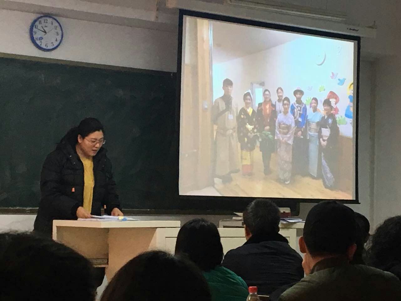 汇报会上,白红梅老师和三名学生分别通过PPT展示,就此一个月的研修活动中的所见、所闻、所感、所获进行了详细汇报,与大家分享了她们在日本研修生活的点点滴滴。白红梅老师在此次汇报会上着重讲述了通过自己赴日研修在日语以及日本文化、国际交流方面取得的收获。并鼓励日语专业学生学好专业知识、提高日语水平。