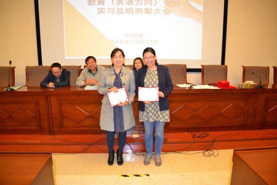 会议第一项,实习指导教师代表敖登老师发言,对实习生在实习单位的表现进行了点评;随后,小学教育(英语方向)专业实习生代表田圆圆、日语专业实习生代表巴音塔拉先后发言,同参会人员分享了实习感受及收获到的宝贵经验;会议第三项,英语教研室红霞主任与日语教研室包金山主任分别对各自专业的实习情况进行全面总结,肯定了实习工作中取得的成绩,并找出工作中存在的不足,提出解决方案。最后,肖查娜主任宣读实习工作表彰决定,并组织颁奖。