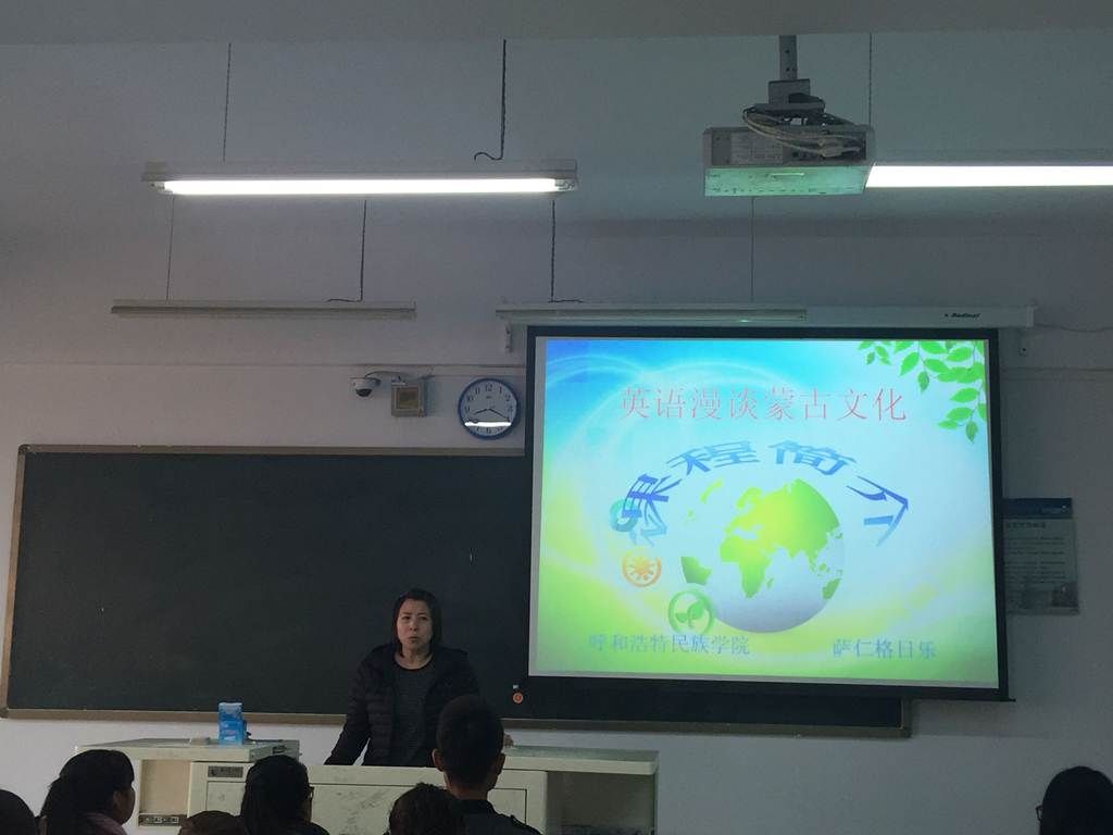 该课程是在智慧树团队提供技术支持下,由外语系萨仁格日乐副教授负责策划、设计、收集素材,美籍外教Jonathan、Sarah和外语系涛歌老师参与,历经5个月时间拍摄完成的。课程主要面向对蒙古族历史文化有着浓厚兴趣且想提高英语口语交际能力的在校大学生。课程共设15单元,每单元择取蒙古族文化中的亮点作为主题,全面引介草原文化历史概况。其内容丰富,最具民族和地域特色,教学模式新颖、学习方法独特。课程试点工作将通过收集学生关于课程设计、内容难易程度、实用性等方面的反馈信息,为课程的进一步改进和完善提供依据,保证课程学习的实用性和有效性,为课程在校内乃至智慧树网站运行推广奠定基础。