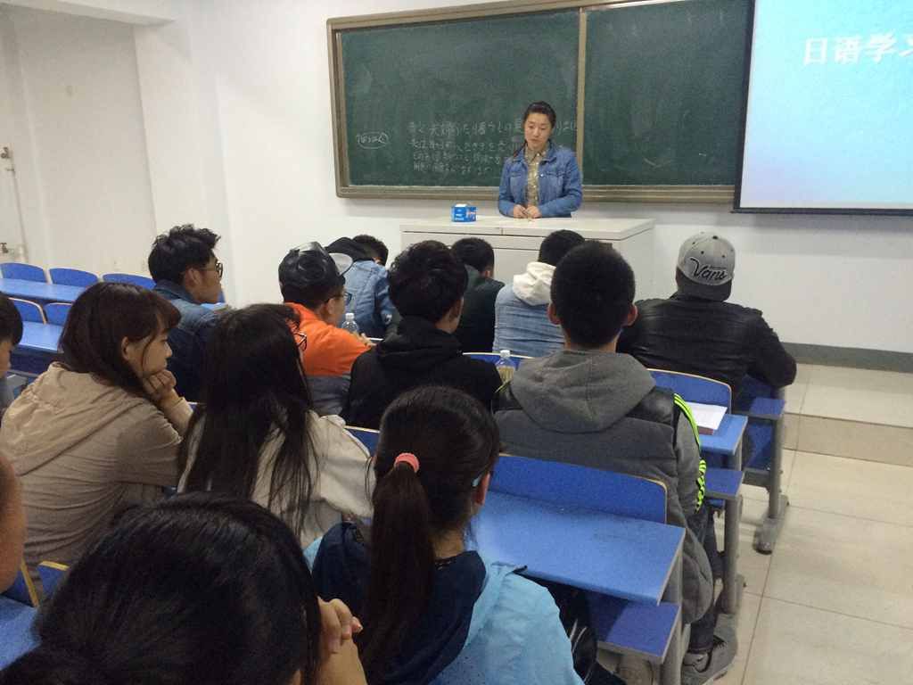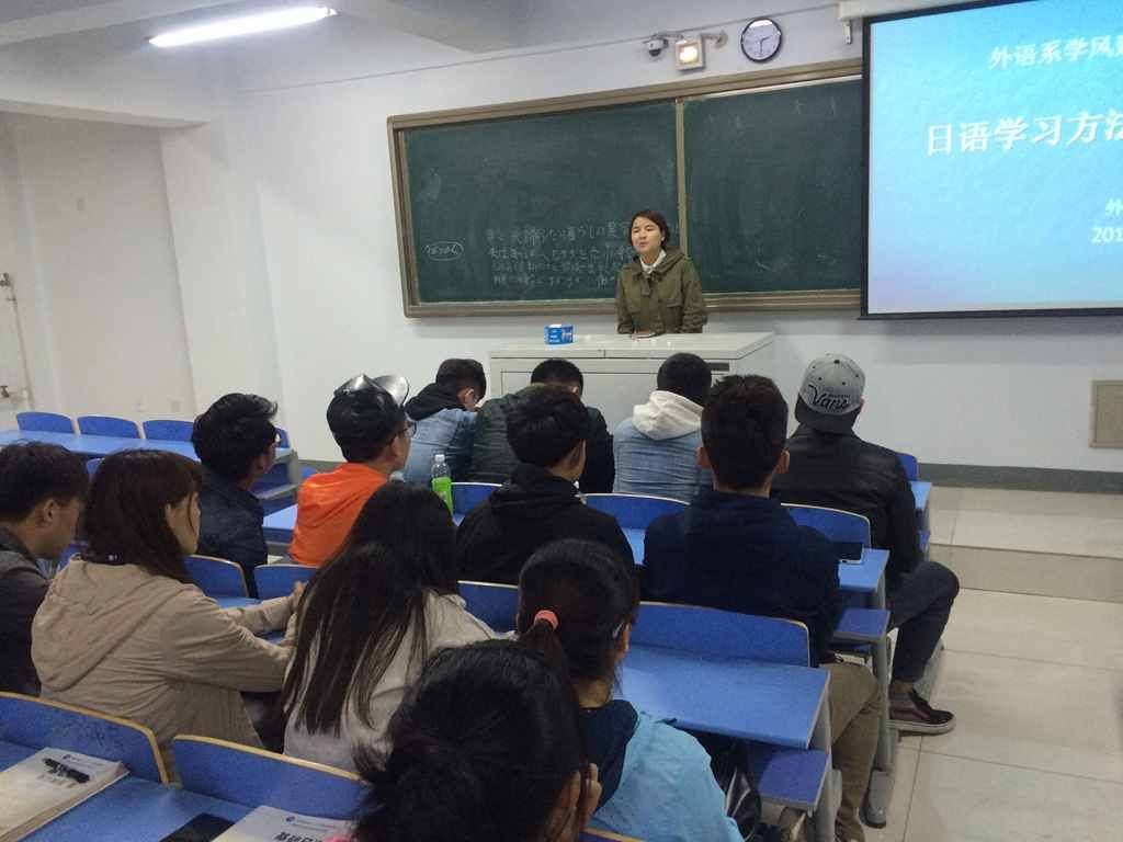 外语系于2015年4月15日在新教620教室举办了学风建设年活动系列之“日语学习方法交流会”。此次交流会邀请了将于2015年10月前往日本实践学习的12级日语班张林、其力木格两位同学,与14级日语班的同学进行面对面交流。