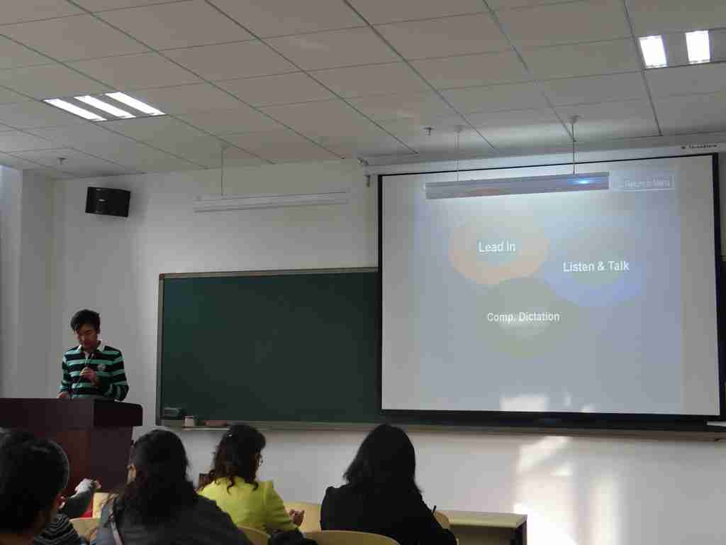 财经大学外国语学院张平院长、郝建军副院长先后发言,就外国语学院的概况、大学英语课程教学改革实施情况等 进行了介绍。一线骨干外语教师李超、包英华、娜和芽结合教学实际,介绍了自己在使用《新编大学英语基础教程 》中积累的宝贵经验,并就教学中采取的有效教学方法、成绩考核评价体系等问题与我系教师进行了深入交流与探 讨。随后,一行十人深入课堂,听取了腾和老师的大学英语示范课,参观了语言训练中心、双语计算教学基地、自 主学习室及教师电子备课中心。此行是我系全面启动大学外语教学改革前进行的师资培训项目之一,必将对大学外 语课程教学改革的顺利实施起到积极的推动作用。
