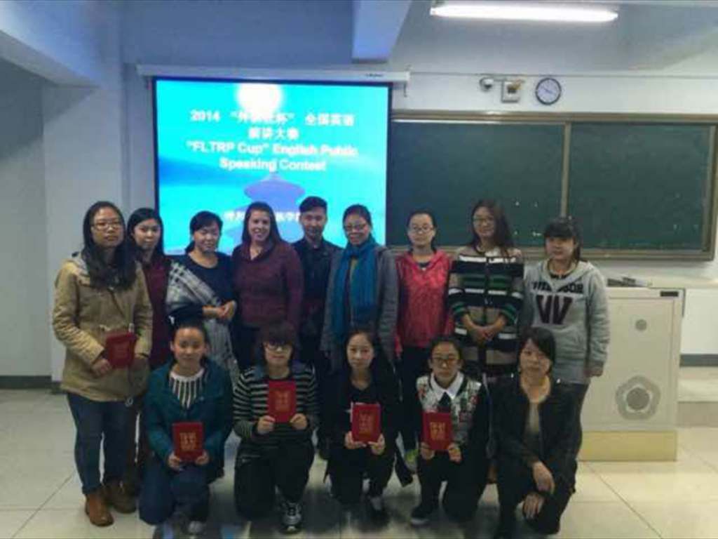 2014年10月15日晚7点,外语系在新教学楼602教室举办了2014年度“外研社杯”全国英语演讲大赛365英国上市公司初赛。本次比赛由外语系公共外语教研室和外语系团总支共同承办,全院学生踊跃参加,比赛场面热烈激扬。大赛通过定题演讲形式选拔出10名选手进入即兴演讲和综合知识问答环节。比赛中,选手们尽显英语演讲的魅力,以标准的英语发音、出色的口语表达、扎实的语言基本功、突出的应变能力征服了评委和观众。经过三个小时的激烈角逐,最终评选出一等奖1名,二等奖2名,三等奖3名。外语系2014级小学英语教育2班的袁静同学荣获本次大赛一等奖。