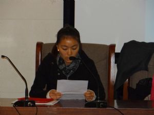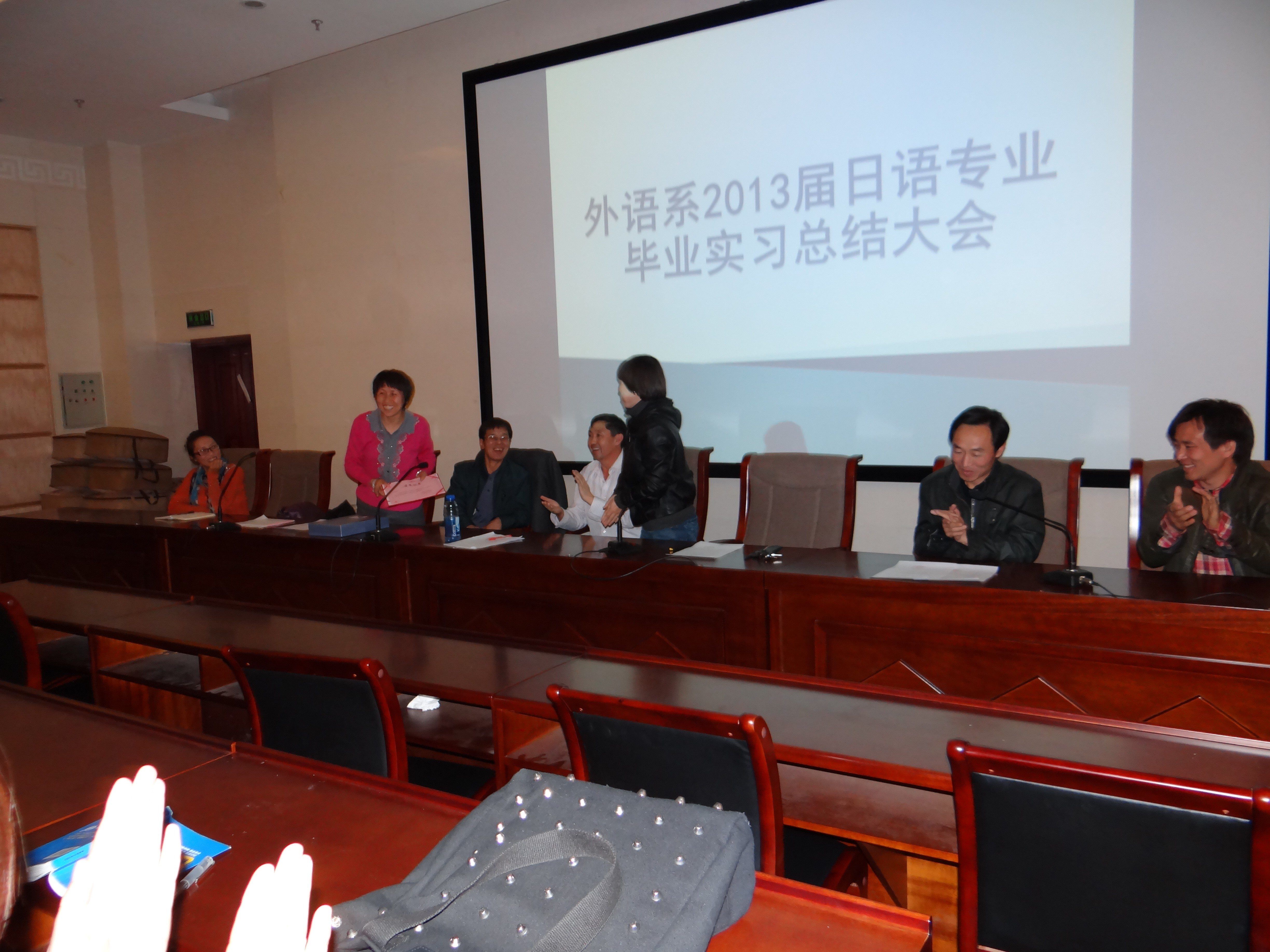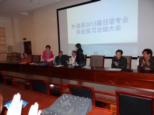 日语教研室主任马福山作了实习总结报告;系主任肖查娜宣读了表彰优秀实习指导教师和优秀实习生的决定;高娃老师代表实习指导教师发言;实习生代表吴斯琴高娃、刘丽丽、赵伟同学先后发言,畅谈毕业实习的感受。