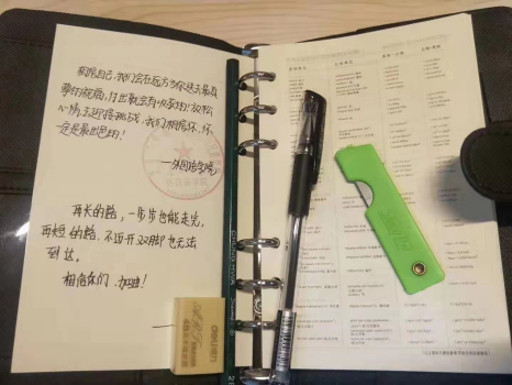随后,布日古德书记、肖查娜院长和其他教师代表将学院精心准备的“考研加油包”送到考研学生手中。同学们看到老师和学弟学妹亲手书写的美好祝福十分感动,纷纷表示真切感受到了全院师生作为他们强大的后盾在为他们加油助威,现场温馨感人、气氛高涨。