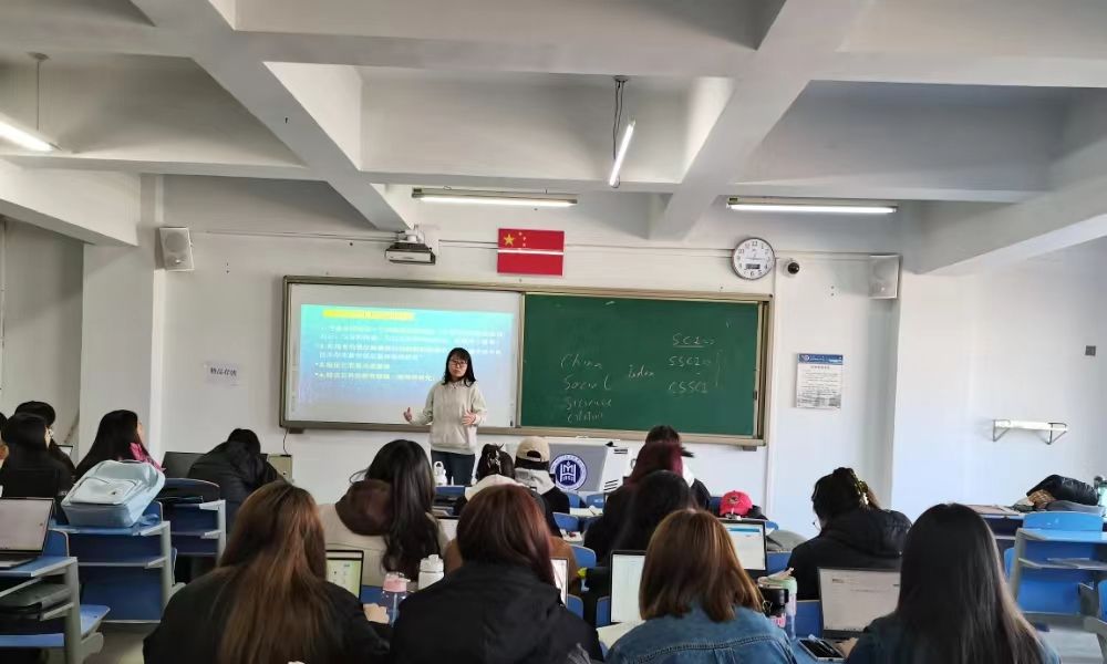 为全面提高教学质量,深化课堂教学改革,促进教师间教学经验、教学方法的学习交流,3月6日上午1-2节,英语教育教研室在都林楼604教室开展了《学术写作与研究方法》课程公开课教研活动。课程由向荣老师主讲,授课对象为2021级英语专业1班学生,部分英语教育教研室、多语翻译教研室教师参加了此次公开课观摩活动。
