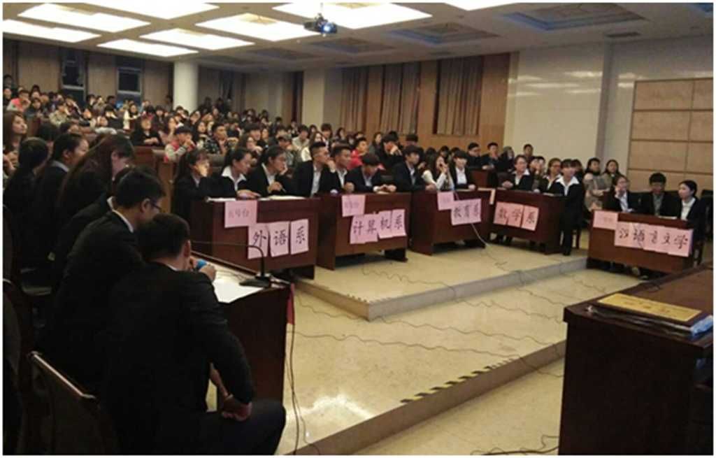 大赛分为选答题、必答题、抢答题、风险题、才艺表演五个部分。比赛最终结果为外语系获得第一名、音乐系获得第二名、体育系获得第三名。