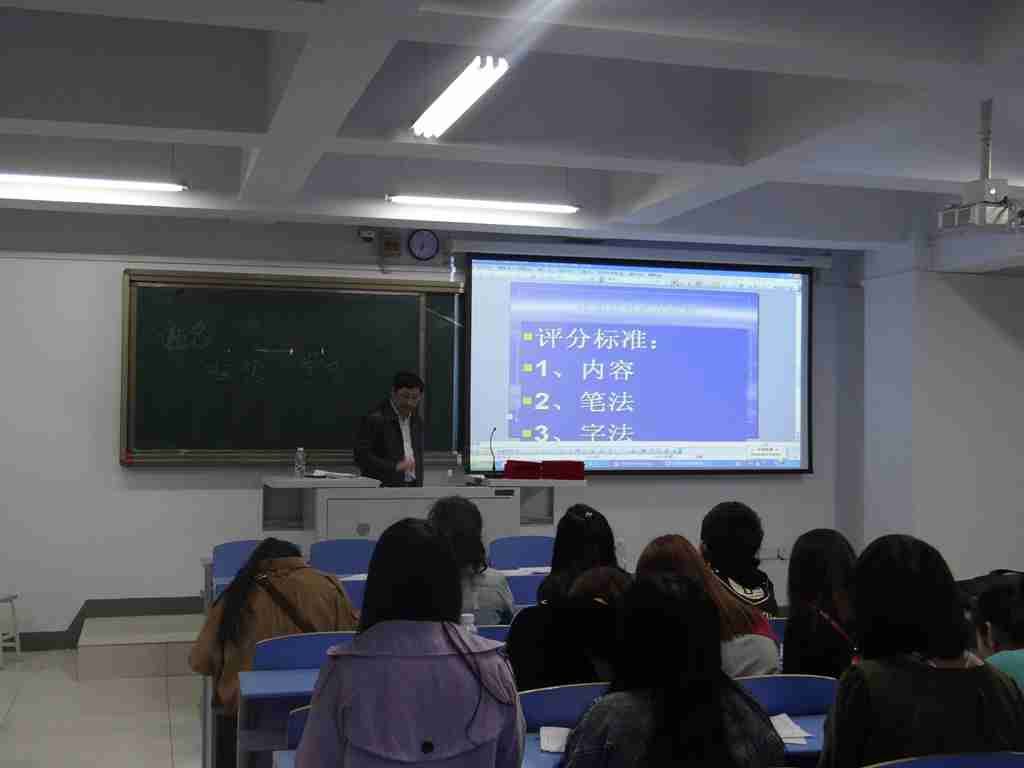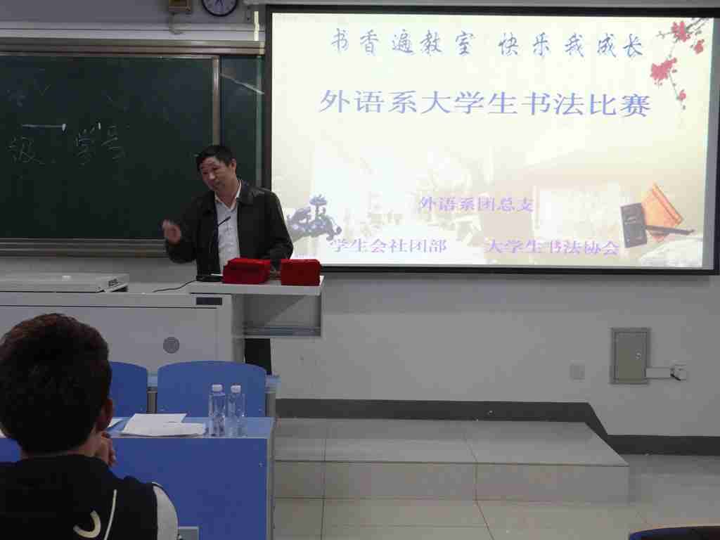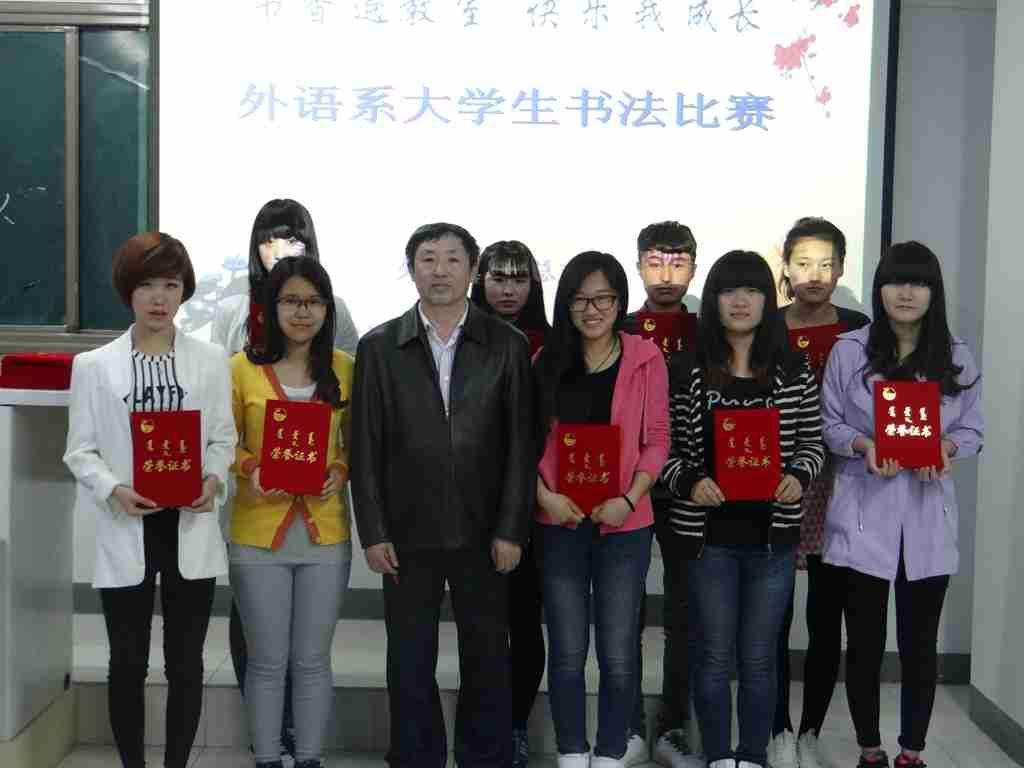 为活跃校园文化生活,展现外语系学生的书法水平,2014年3月30日晚6:30,外语系团总支在新教学楼618教室举办了大学生蒙汉语书法比赛。外语系近100名同学参加了本次比赛,评委由研究多年书法的日语教研室教师马福山担任。