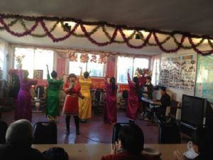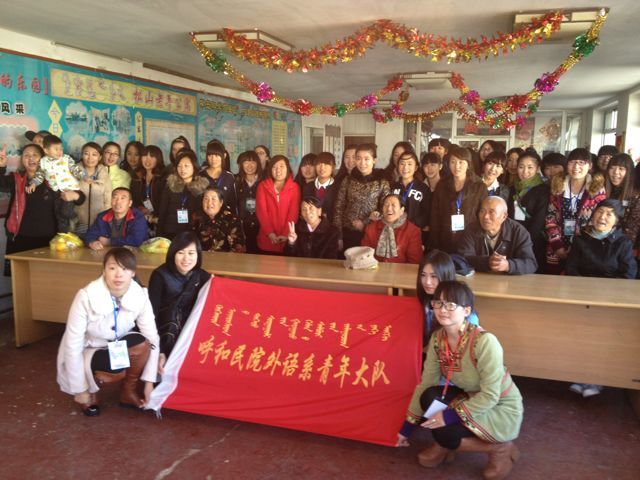 外语系团总支于2013年11月3日上午9:20-11:30组织我系青年志愿者大队、爱心社40名志愿者,在系学生会副主席张布和吉日嘎拉的带领下赴呼市松山老年公寓开展了慰问演出活动。同学们精心准备了17个节目,老人们在优美的歌声,欢快的舞蹈中度过了一个难忘的周末。