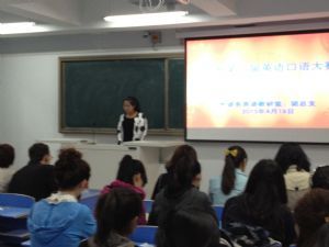 为提高学生的英语口语水平,丰富课余生活,2013年4月19日,外语系团总支、英语教研室在新教学楼618教室举行了第二届英语口语大赛。