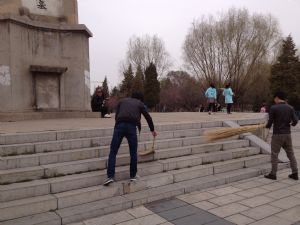 同学们在革命烈士墓碑前默哀一分钟后,开始打扫革命烈士墓碑以及周围的环境卫生。打扫过程中,同学们不怕脏不怕累,带着对烈士的崇敬之意,认真地清扫墓碑的每一个角落。