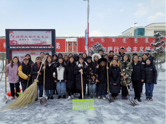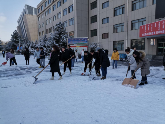 近日,呼市再次迎来降雪,呼民院的校园内白雪皑皑、银装素裹,为校园内带来一丝诗意,因此校园内处处被雪覆盖,有的地方结成薄冰,给老师、同学们及来往的行人们的出行带来了不便。为引导青年学子寻初心、担使命,培养学生服务他人意识,12月16日中午,外国语学院学生党员、全体学生会成员和青年志愿者协会共计65人在雷旭平老师的带领下于都林楼北门开展了“不忘初心、牢记使命”暖心冬日除雪活动。