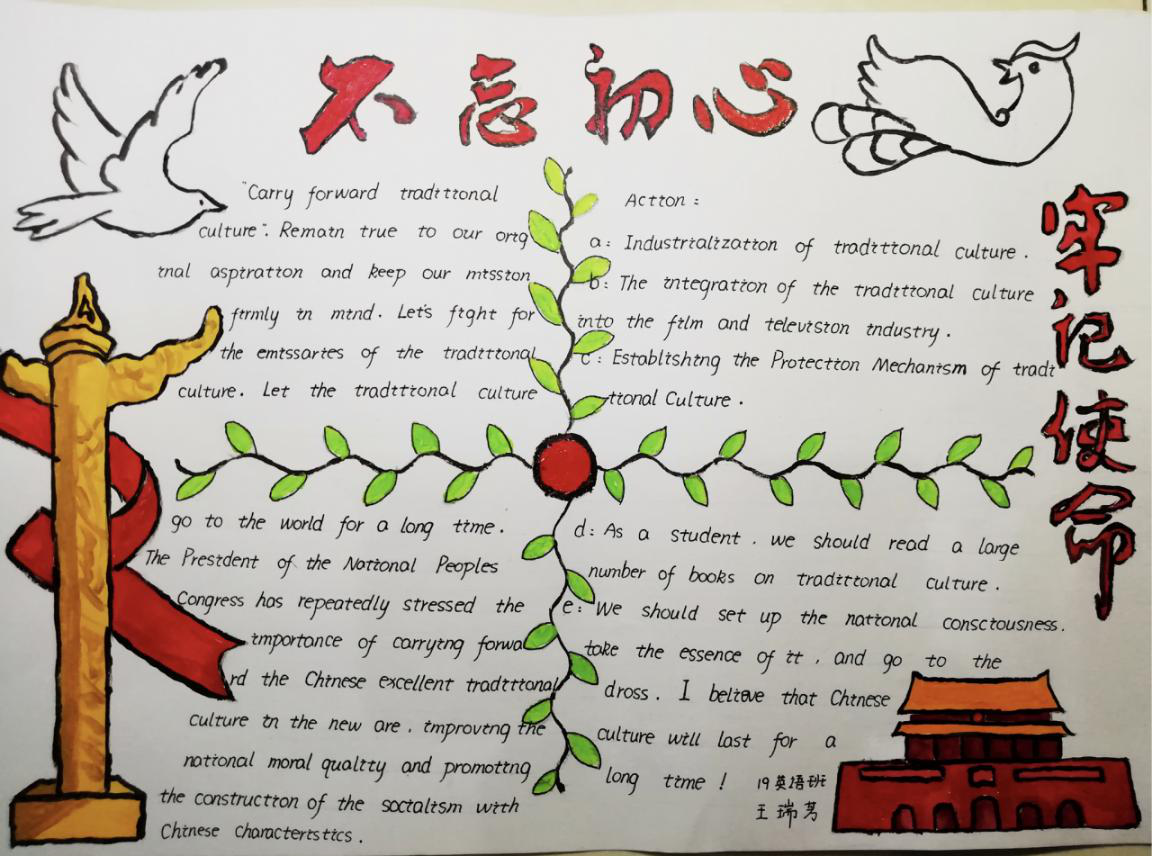 为推进“不忘初心、牢记使命”主题教育进一步深入,激发学生守初心、担使命的责任感,11月8日—11月12日,外国语学院于都林楼举办了“不忘初心、牢记使命”之弘扬传统文化主题手抄报活动,活动共征集到21幅手抄报作品。本次活动分初赛和决赛两个环节。初赛利用网上投票平台对参赛作品进行投票,截止投票结束,点击观看作品共计8411人次,参与投票数2130。经过投票,共10幅作品进入决赛环节。