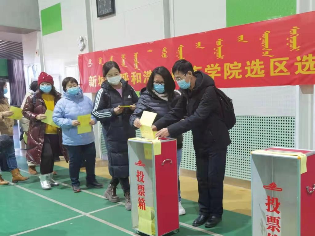 会上,首先由肖查娜院长就候选人信息进行详细介绍,并由红梅副书记宣读《新城区第66选区第十八届人民代表大会选举办法(草案)》,所有师生全体表决通过。随后,布日古德书记就本次选举工作的重要性进行说明,并宣读了监票人、计票人、工作人员名单及选举大会注意事项,并由监票人现场检查票箱,随后工作人员分发选票、确保人人有票。选民们在将选民证出示给在现场监票人员后,选民都依法行使自己的投票权,充分尊重法律赋予人民的神圣权利。此次选举采用无记名投票方式进行,投票选举过程组织规范、纪律严明、程序合法,呈现着民主、和谐的气氛。监票人员全程监督投票过程,确保防疫、投票“两不误”。