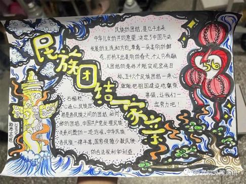 为全面贯彻党的民族政策,深化民族团结进步教育,铸牢中华民族共同体意识,外国语学院于9月23日举办“民族一家亲”手抄报比赛,通过创作手抄报的形式引导学生了解各民族的特色文化、风俗习惯,加深各民族学生对其他民族文化的了解,增进彼此感情,引导学生树立正确的国家观、历史观、民族观,增强学生对中华民族的认同感和自豪感。